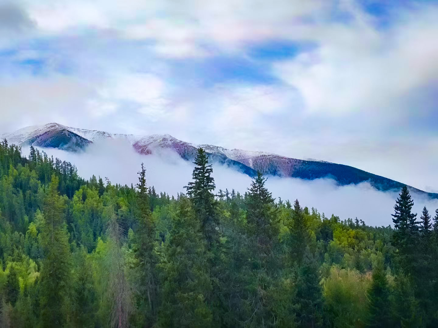 8月31日,新疆阿勒泰地区哈巴河县白哈巴村宛如世外桃源。蓝天白云下,雪山巍峨耸立,山间云雾缭绕,似轻纱般缠绕山腰,山脚下,森林郁郁葱葱,绿意盎然。白哈巴村的木屋错落有致,与自然环境和谐相融,静谧中透着古朴,仿佛一幅浑然天成的山水画卷。