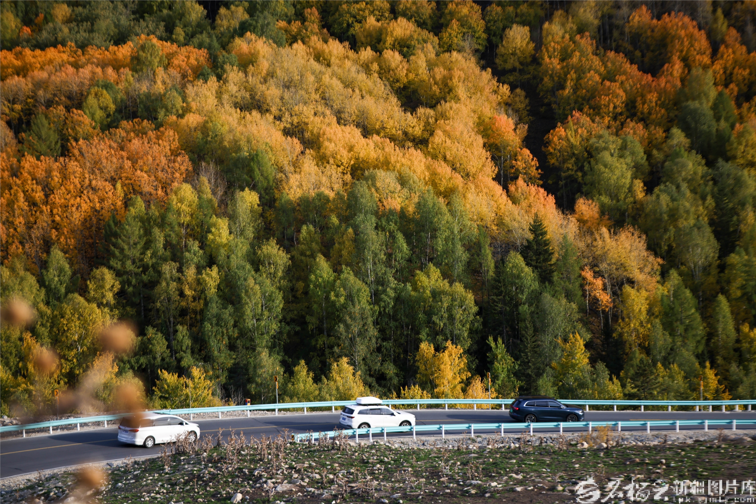 进入秋季,阿勒泰地区阿禾公路呈现五彩斑斓的色彩世界。红、黄、绿相间的植被与阳光相互映衬,形成一幅幅绝美风景画。通讯员王友波摄
