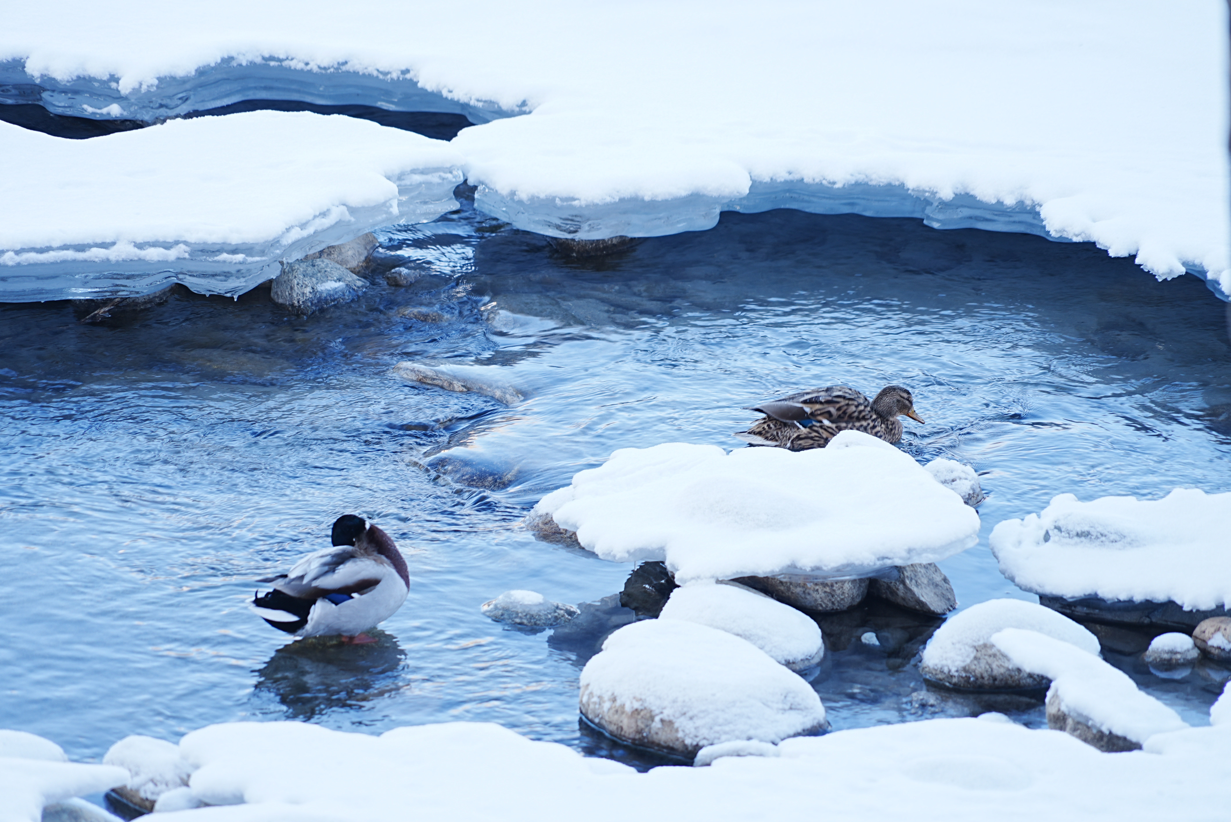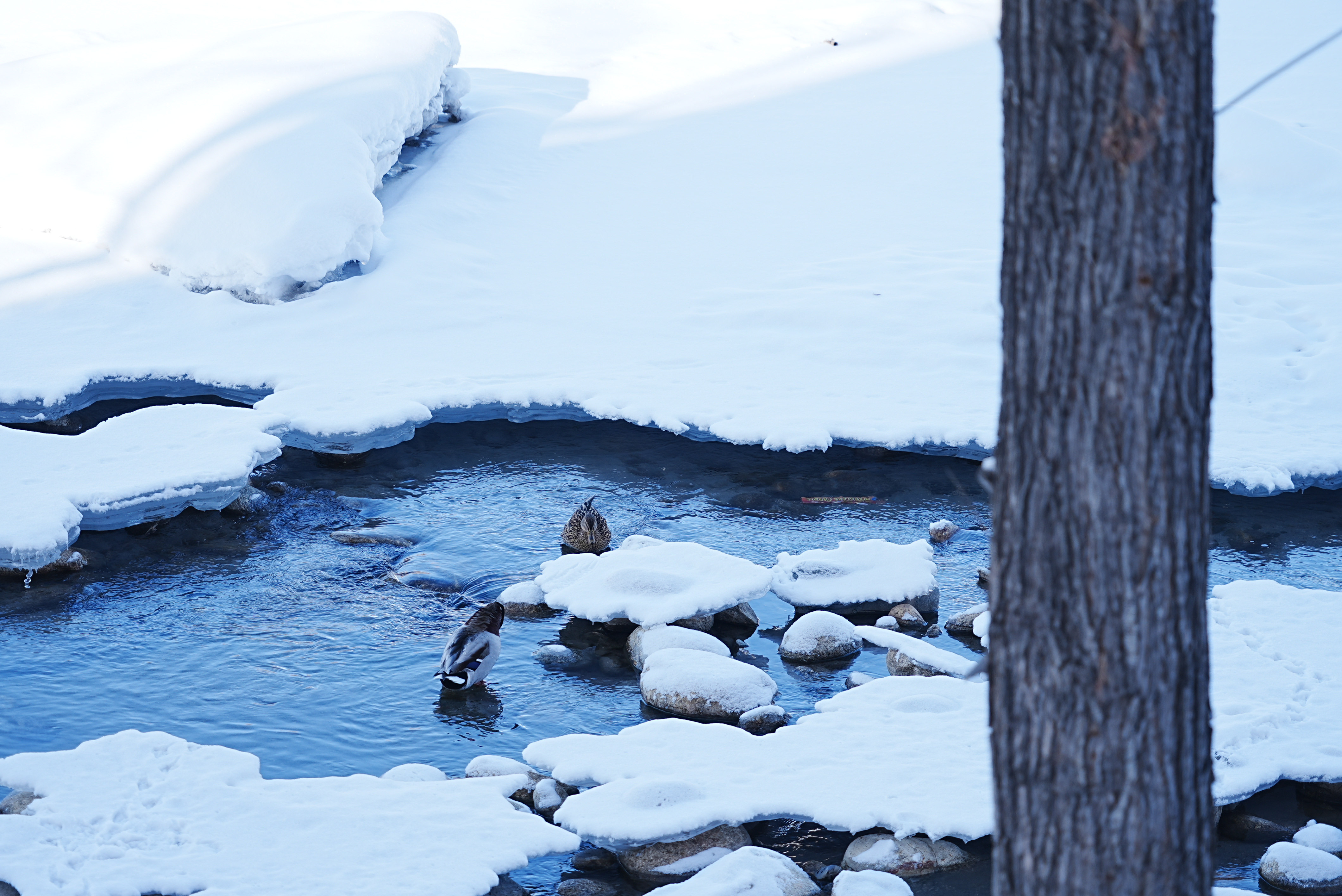 3月4日,新疆阿勒泰市的克兰河畔,冬意未尽,冰雪尚未完全消融。碧波微漾的河水中,三五成群的野鸭静静休憩。白雪点缀河岸,冰层映着天光,绿头鸭穿梭其间,宛如一幅生动的“寒鸭戏水图”,为这条穿城而过的河流增添了几分早春的意趣。
