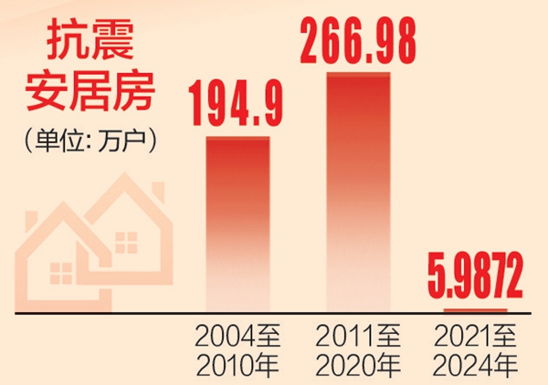 2024年,新疆将推进城乡抗震安居工程列为十大民生实事,重点对地震等自然灾害易发多发地区达不到抗震设防标准的房屋进行加固改造,全年排查并加固建设地震重点危险区农村住房抗震防灾工程2.42万户,确保各族群众住有安居、住有宜居。