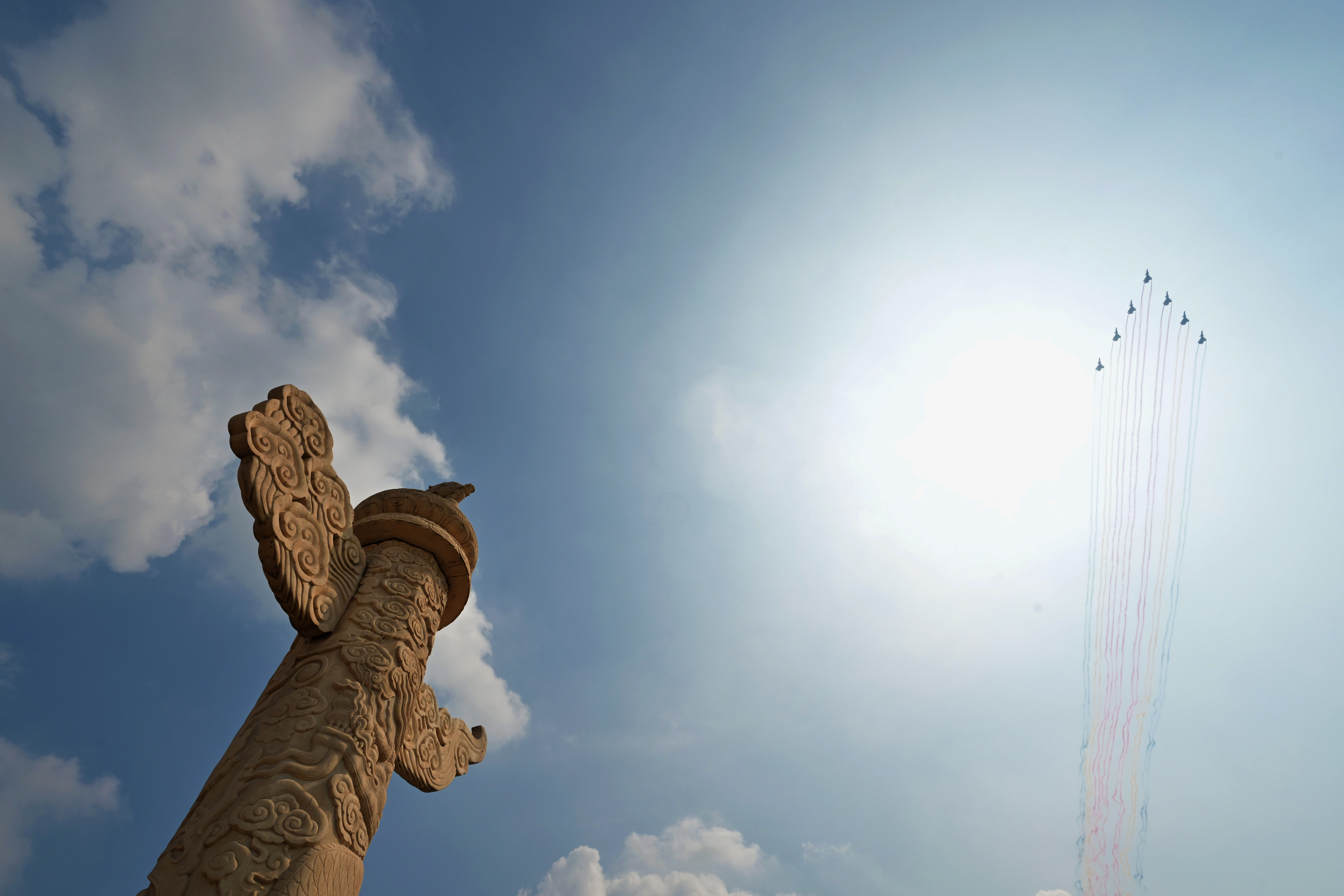 此时此刻,万众瞩目,屏息凝神。东长安街上,徒步方队、战旗方队、装备方队整齐列阵;华北多地,战机起飞,向天安门广场上空集结……