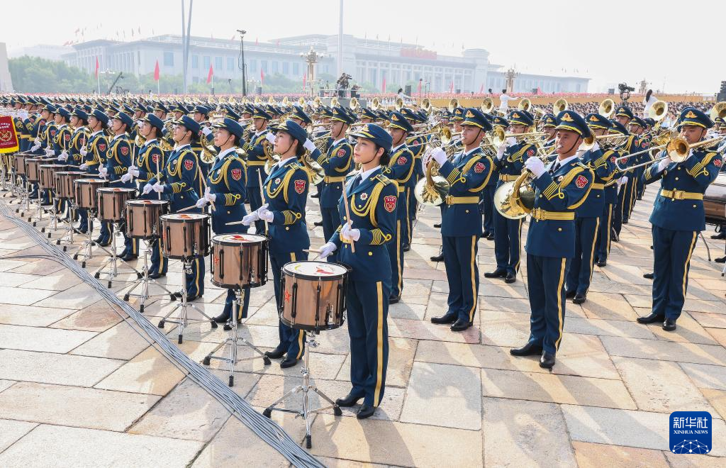 9月3日,纪念中国人民抗日战争暨世界反法西斯战争胜利80周年大会在北京天安门广场隆重举行。这是中国人民解放军联合军乐团在演奏。新华社记者 张玉薇 摄