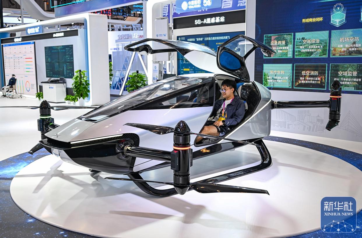 9月4日,媒体记者在2025世界智能产业博览会会场参观体验智能电动垂直起降飞行器。