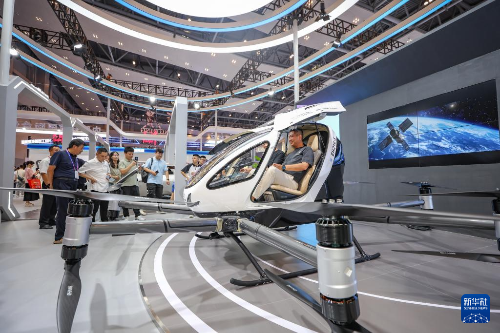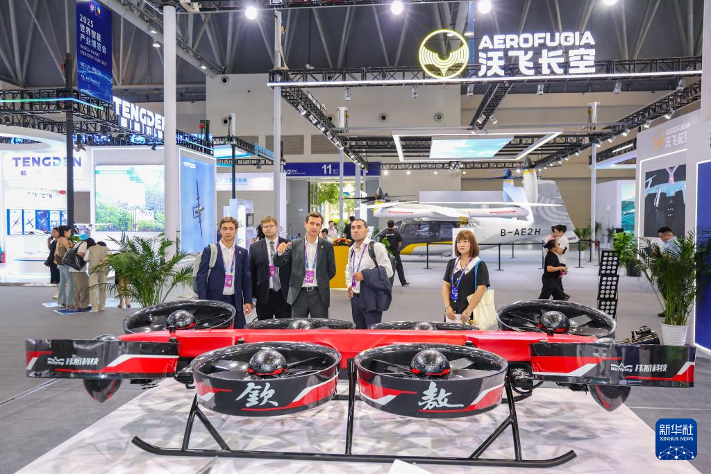 9月5日,观众在2025世界智能产业博览会上参观电动垂直起降飞行器。新华社记者 王全超 摄
