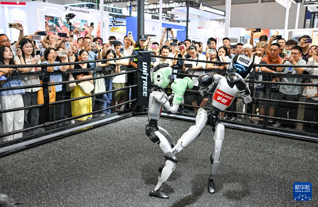 这是9月5日在2025世界智能产业博览会宇树科技展厅拍摄的机器人拳击赛现场。新华社记者 王全超 摄