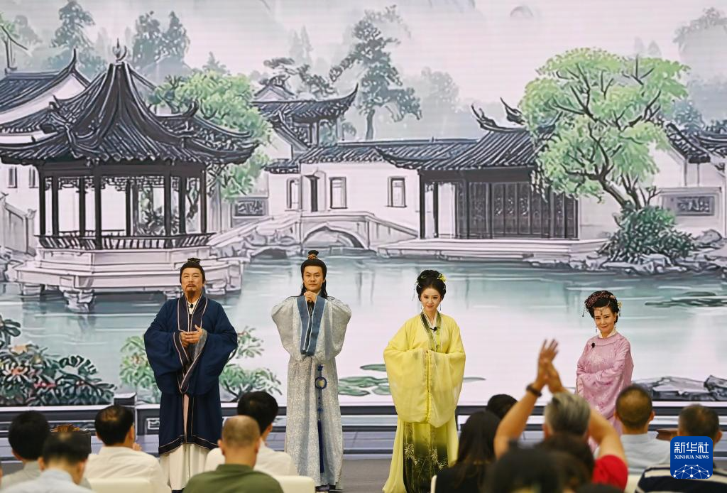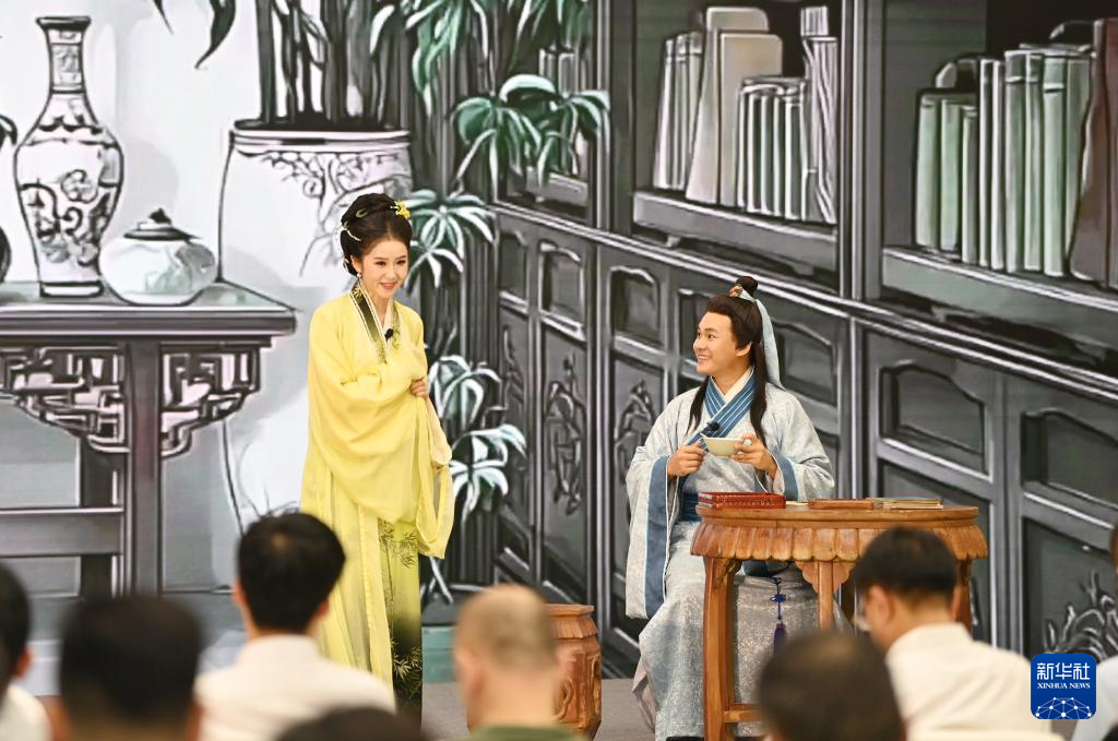 9月5日,演员在新闻发布会上表演话剧《钗头凤》片段。新华社记者 李然 摄