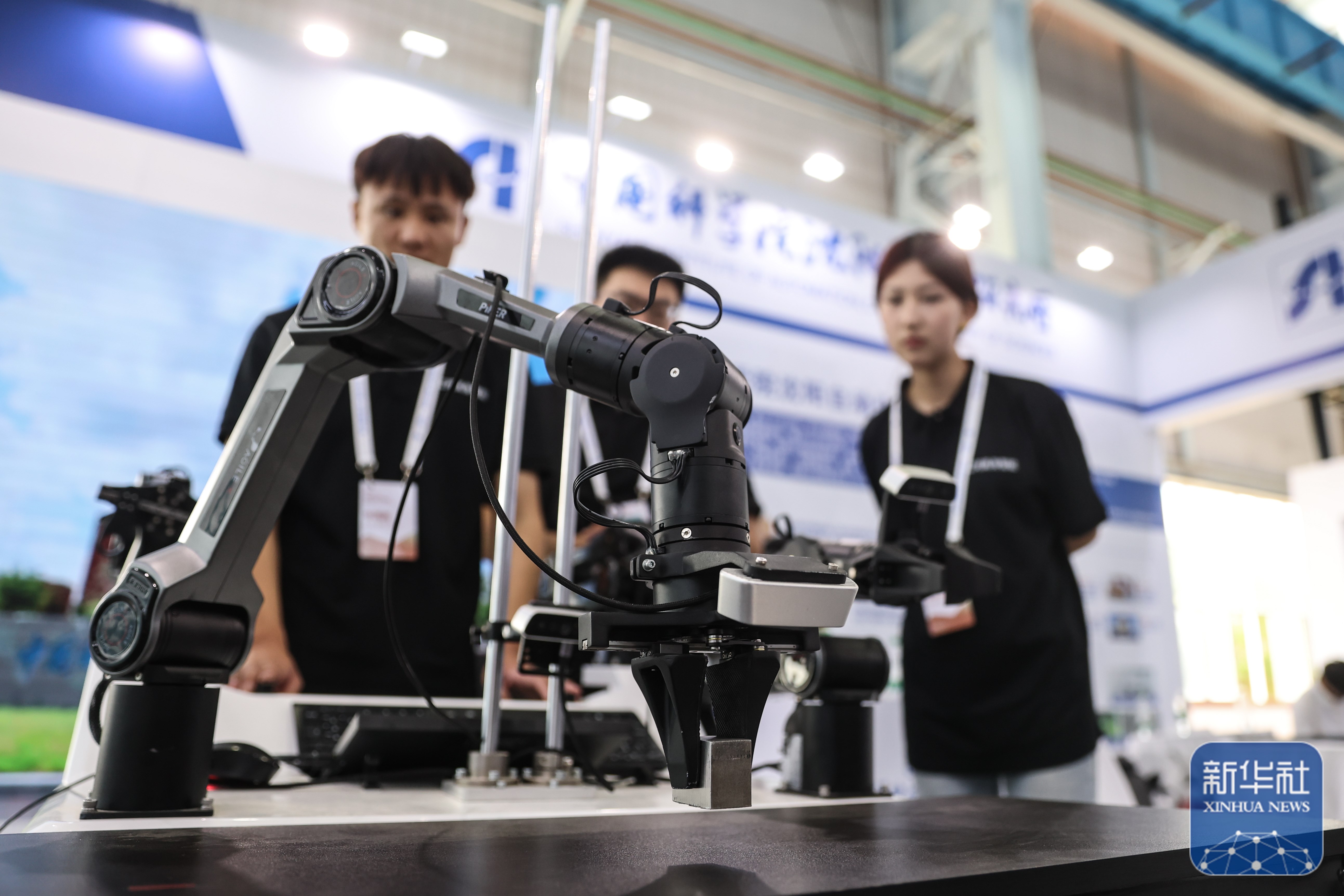 ↑ 9月6日在2025全球工业互联网大会展览区展示的工业机器人。新华社记者 潘昱龙 摄