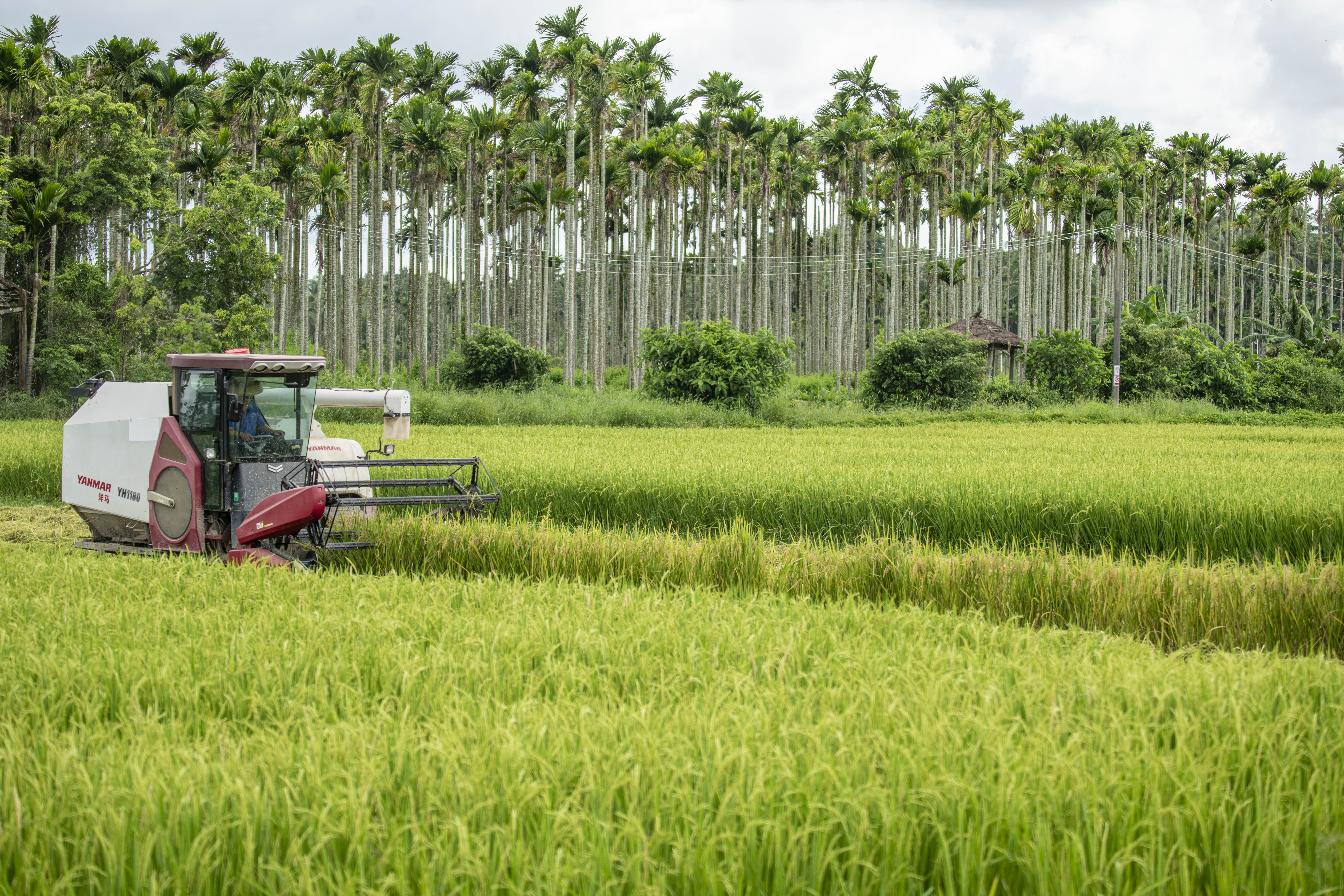 ↑ 9月5日,农民在海南省琼海市龙寿洋田野公园收割再生稻。新华社发(蒙钟德 摄)