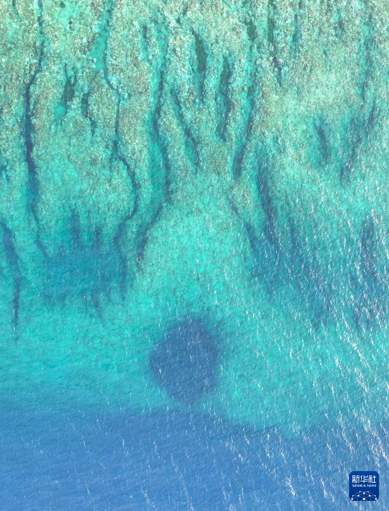 这是2025年3月26日拍摄的黄岩岛浅水区的一片礁盘(无人机照片)。新华社记者 郎兵兵 摄