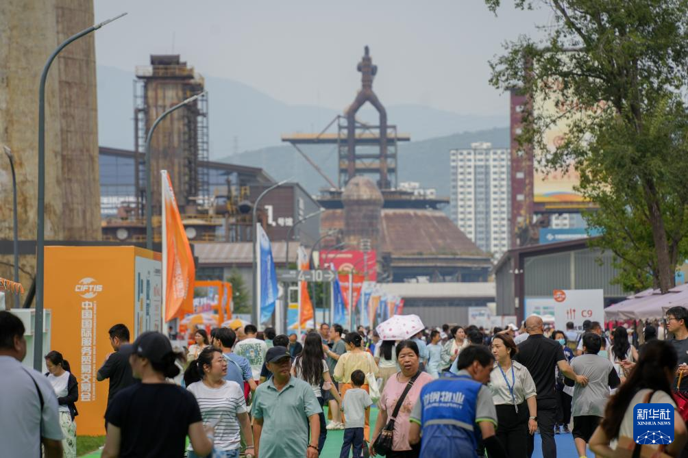 9月13日,人们在北京首钢园2025年服贸会文旅服务展区参观。新华社记者 徐钦 摄