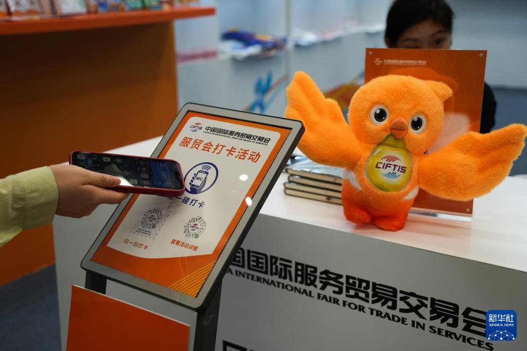 9月13日,参观者参与服贸会打卡活动。新华社记者 周汀鹭 摄