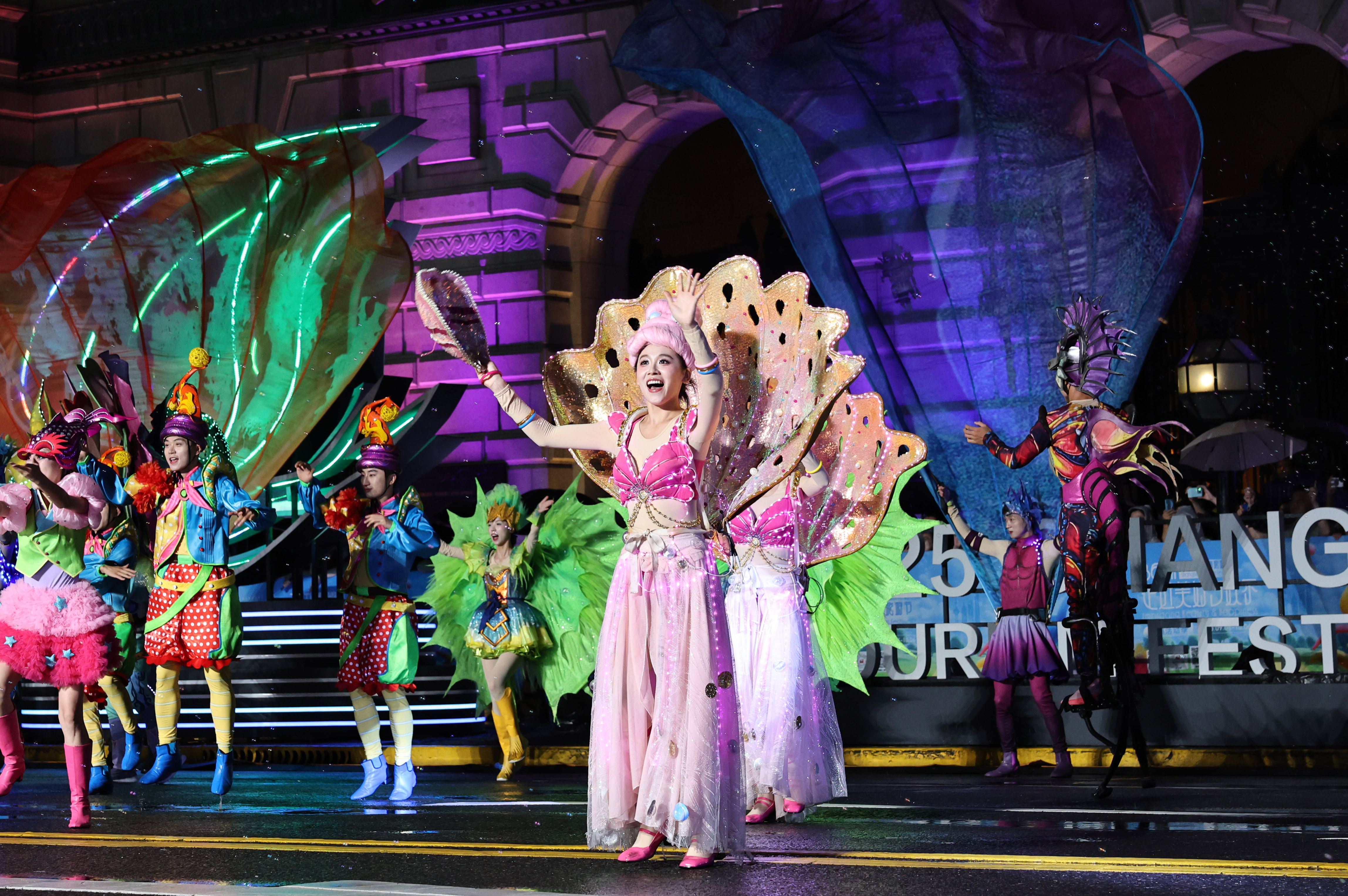 9月13日,上海迪士尼度假区表演团在旅游节花车巡游活动上表演。