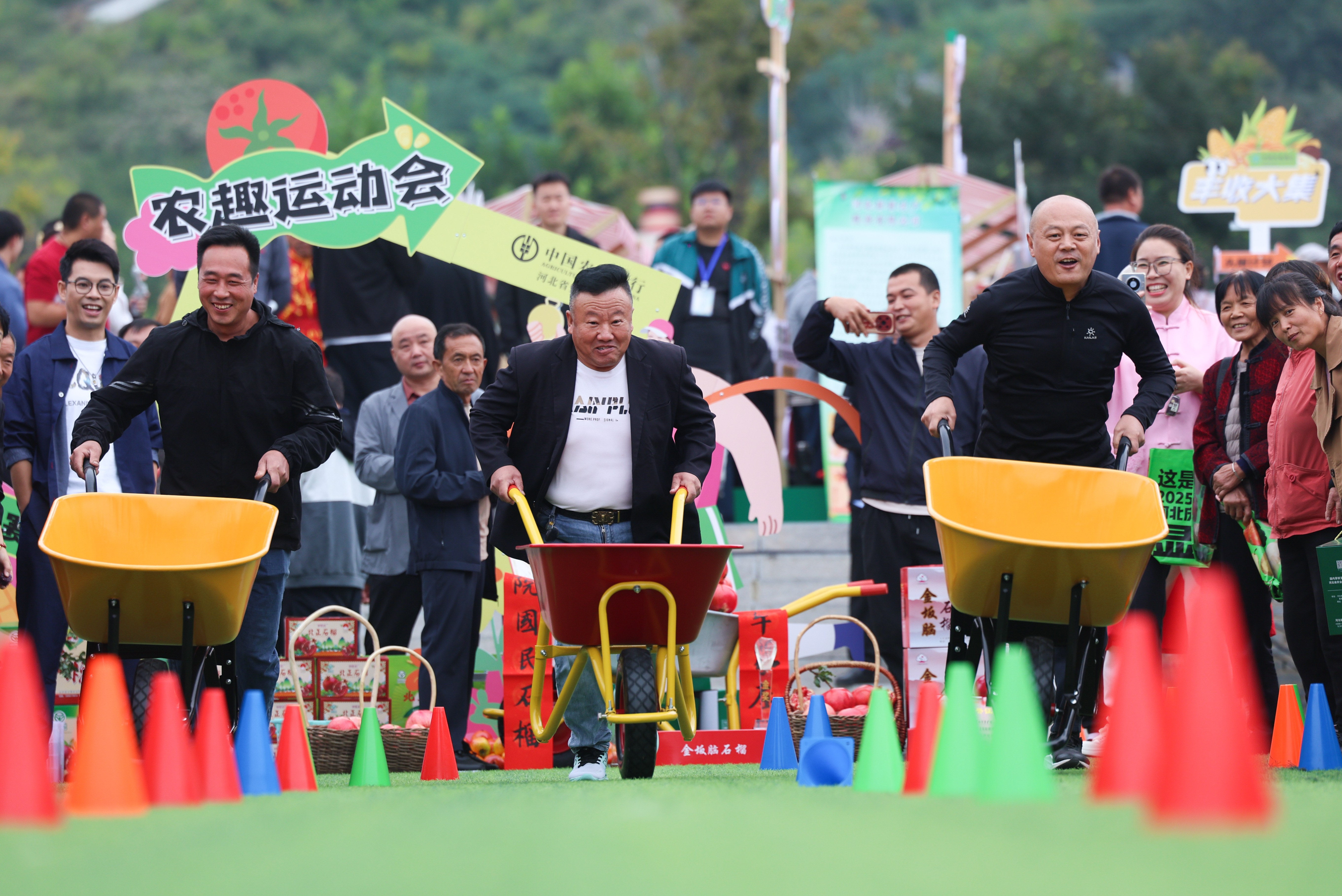 ↑9月23日,在河北省元氏县封龙书院,人们在庆祝活动中参加农趣运动会。新华社发(梁子栋摄)