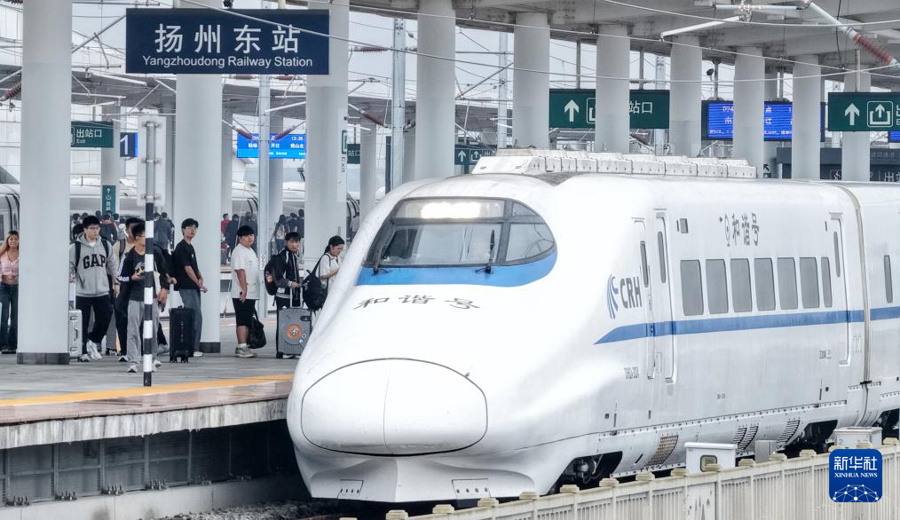9月29日,旅客在扬州东站准备乘车出行(无人机照片)。新华社发(孟德龙摄)