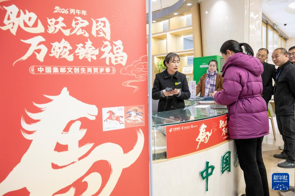 1月5日,在江苏省宿迁市邮政发展大道支局,集邮爱好者在排队购买《丙午年》特种邮票。新华社发(马海峰摄)