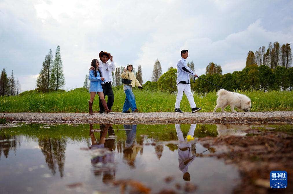 2月26日,游客带着宠物狗在滇池边游玩休闲。新华社记者 陈欣波 摄