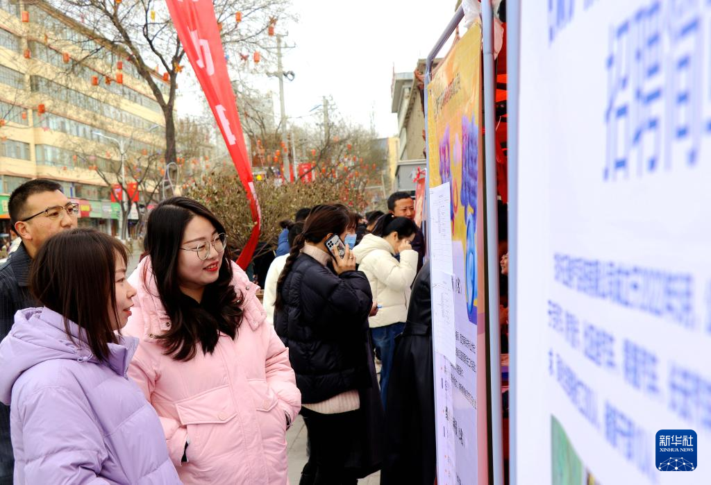2月26日,求职者在甘肃省平凉市静宁县2026年“春风行动”县内重点企业用工保障暨东西部劳务协作专项招聘活动现场了解招聘信息。新华社发(王毅摄)