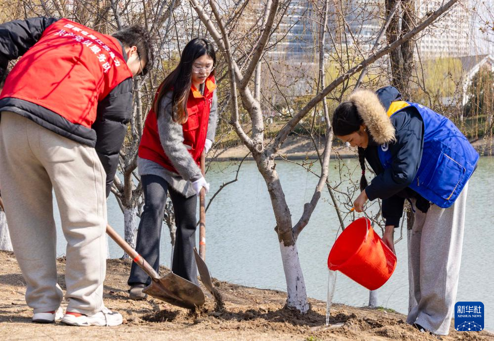 植树节前夕,人们在春光中参加植树活动,为大自然增添新绿。