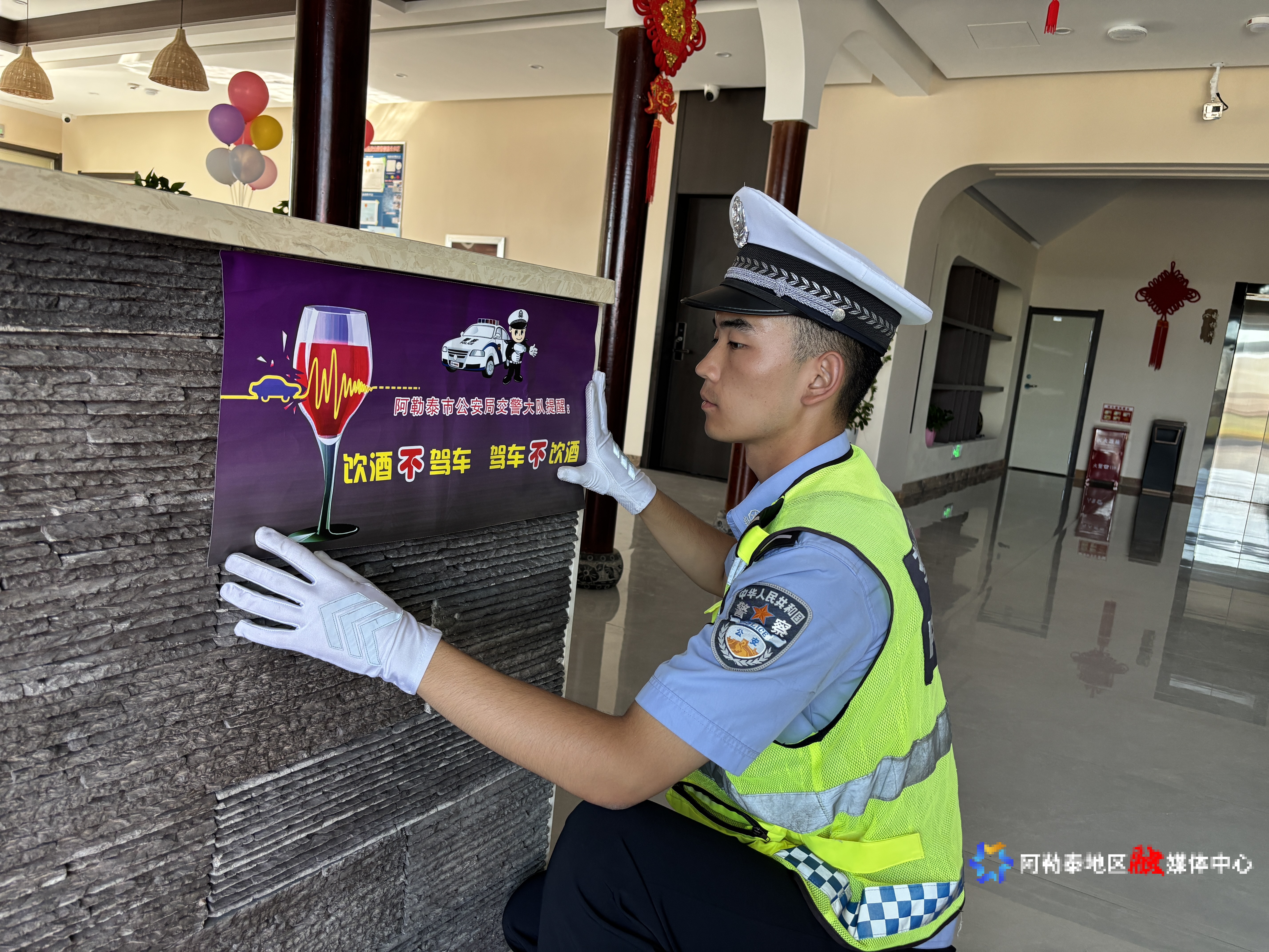“隔夜酒”别侥幸!阿勒泰交警进酒店检测+贴标语双重提醒
