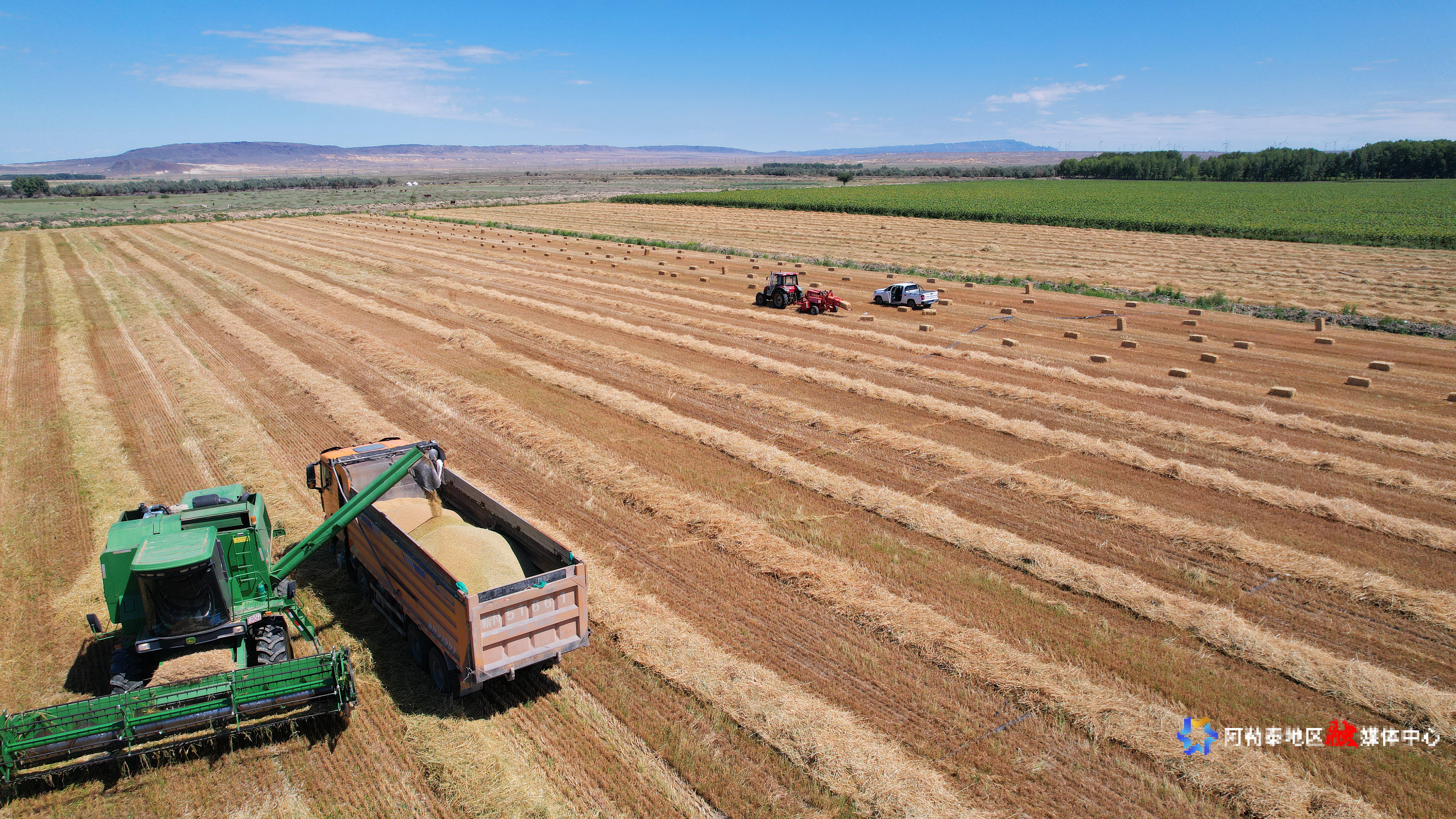 阿勒泰新闻网-阿勒泰地区融媒体中心 (记者 常轶茹)8月,金山大地迎来一年中最绚丽的时节。广袤的麦田深浅交错,如茵的草场绵延铺展,成熟的蔬果压弯枝头,阿勒泰宛如天然调色盘,描绘着“喜看稻菽千重浪”的永恒诗意。