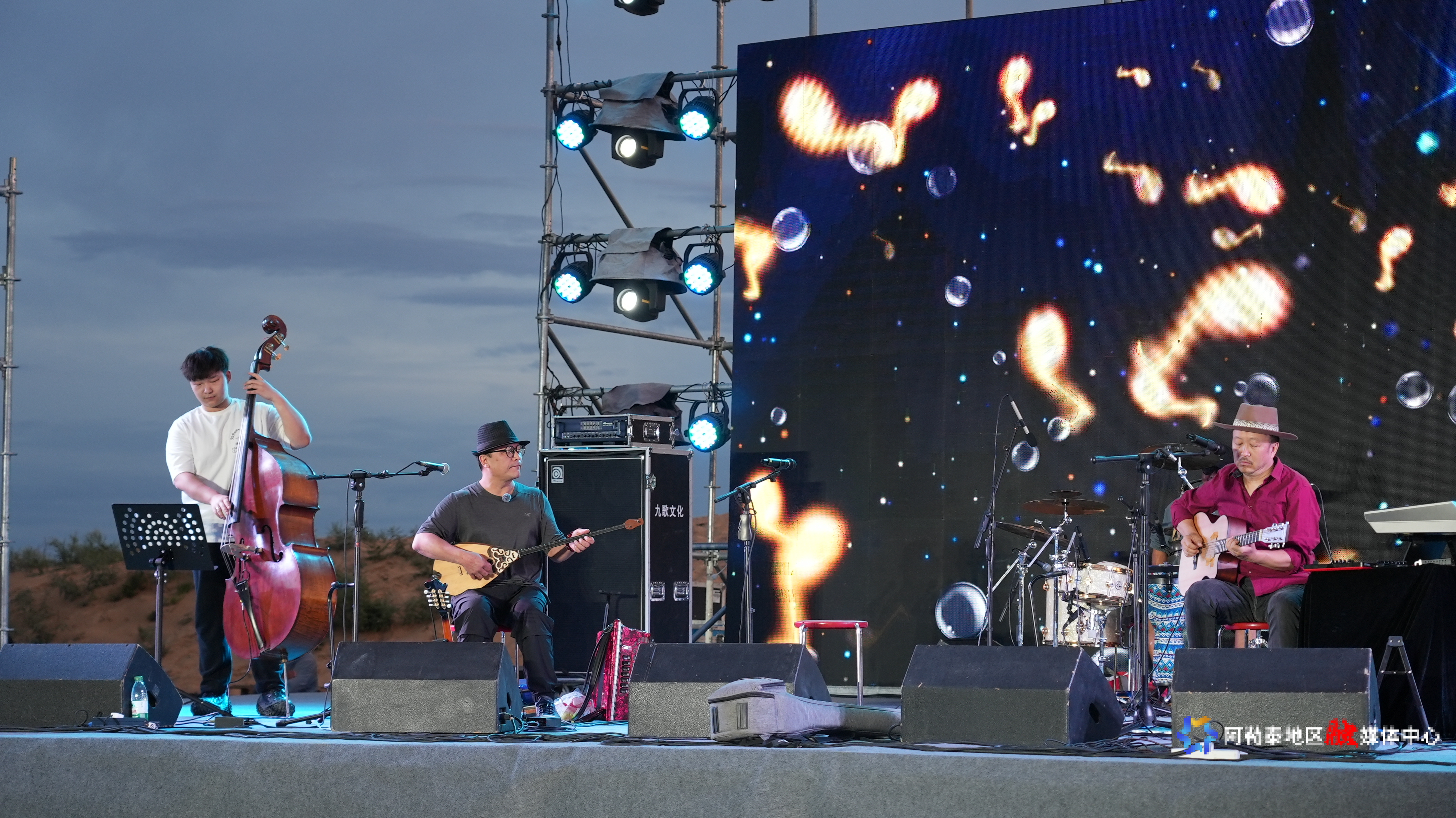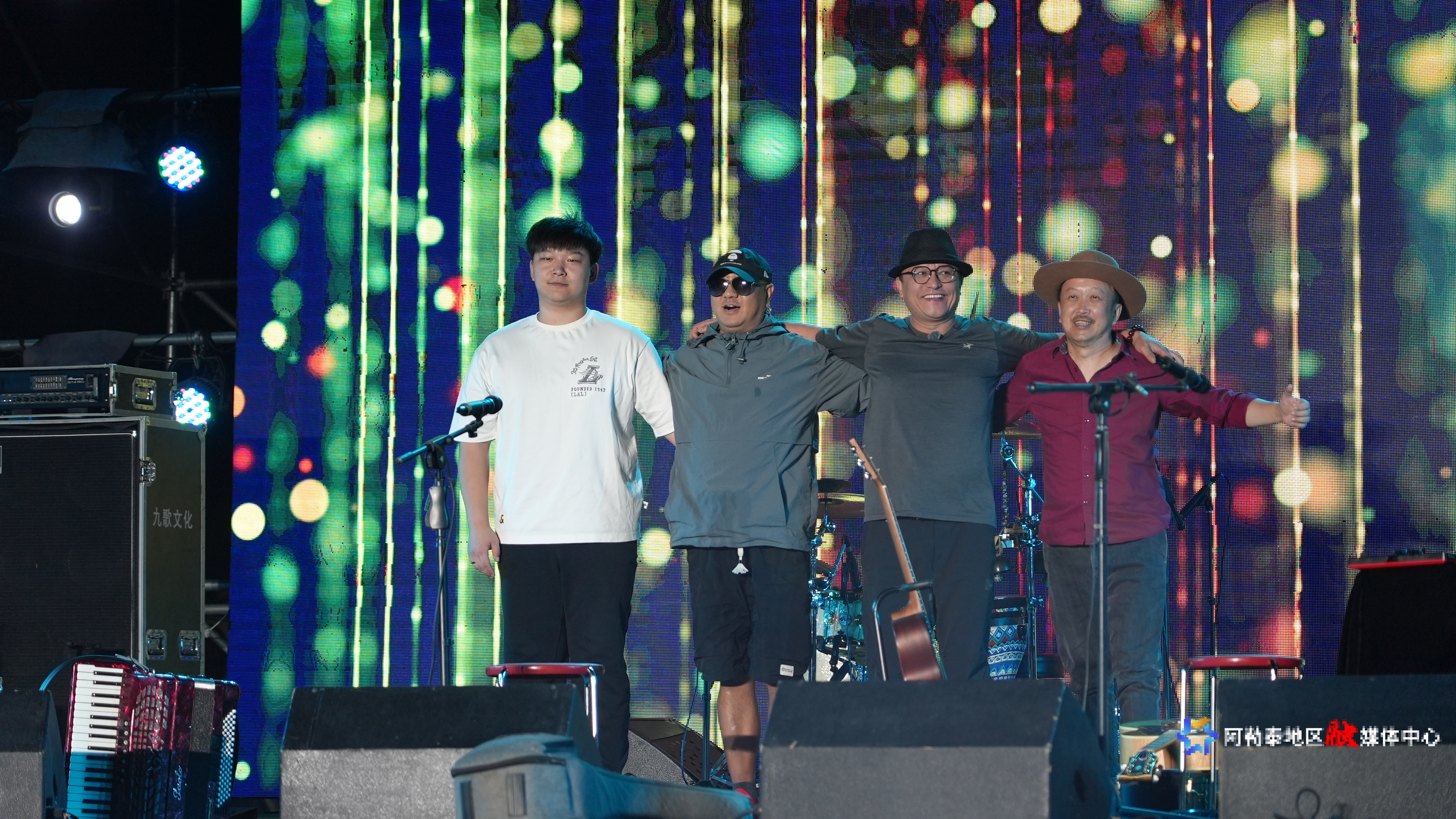 现场氛围同样令人难忘。观众们轻声跟唱,尽情享受音乐带来的快乐与感动。舞台后方,是连绵的银色沙丘,在灯光映照下显得更加壮观,现场观众无不沉醉于哈巴河县独特的自然风光与浓郁的民俗风情中。