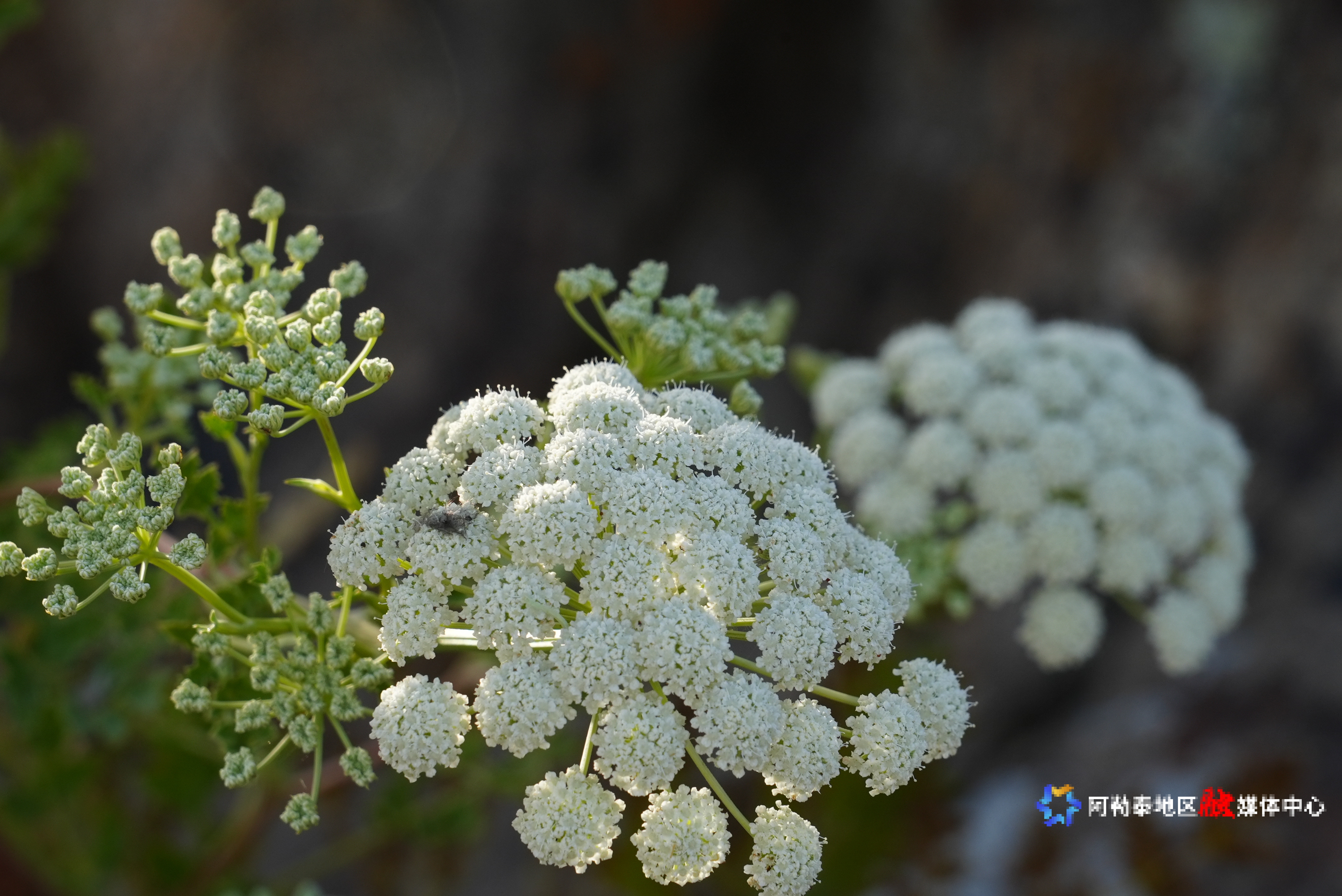 在阿勒泰地区的苍茫山崖间,一种名为“蛇床”的野花正悄然绽放,在山野间是一道优美的风景线。