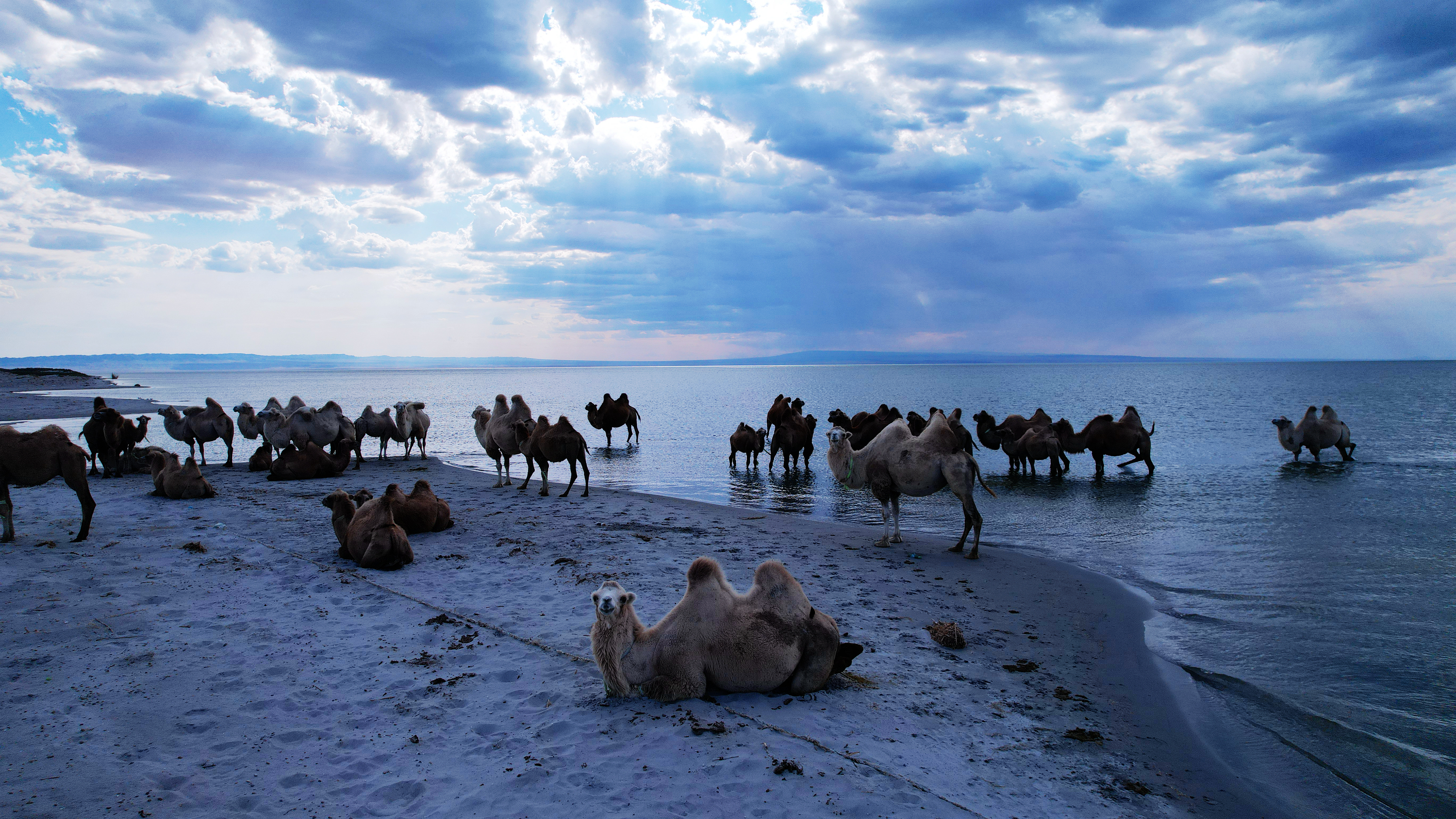阿勒泰新闻网-阿勒泰地区融媒体中心(记者 阿尔达克·拜斯汗) 8月25日,在乌伦古湖畔,一群骆驼悠然饮水休憩。它们高大的身影与波光粼粼的湖面构成了一幅静谧而壮美的生态画卷。