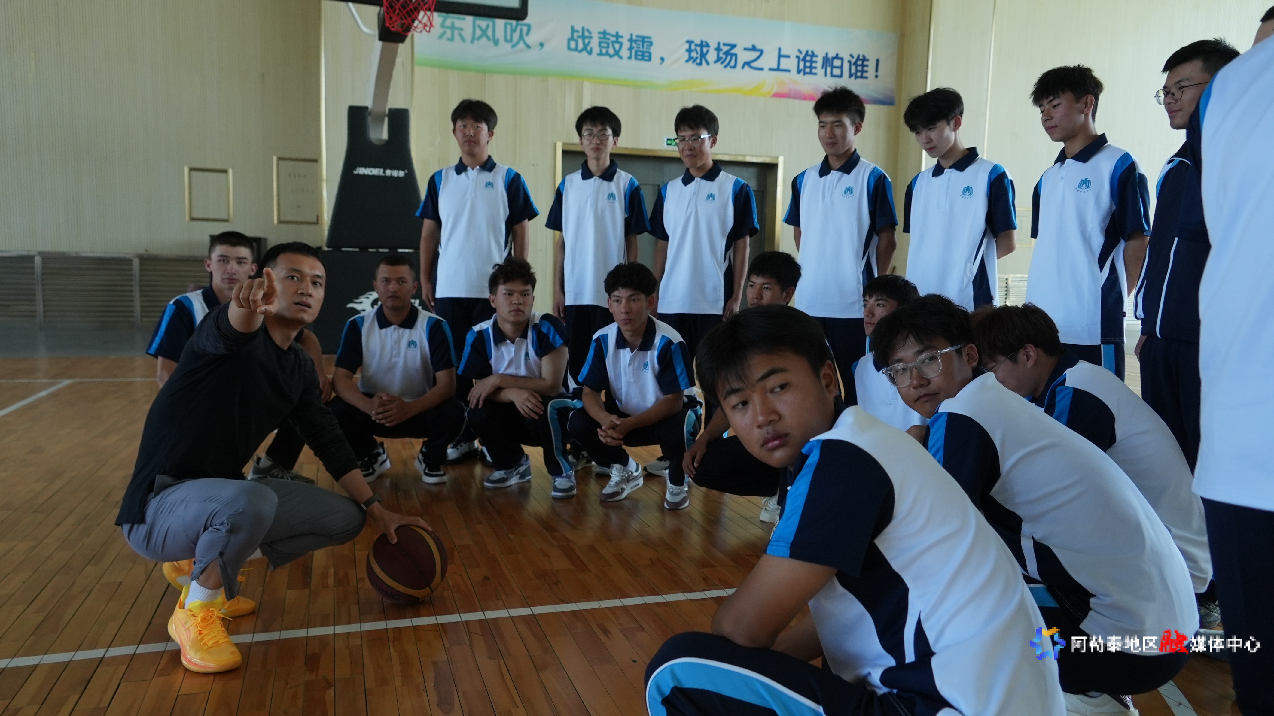 新疆财经大学阿勒泰校区体育老师杨义乐正在指导酒店管理1班同学篮球快攻战术。