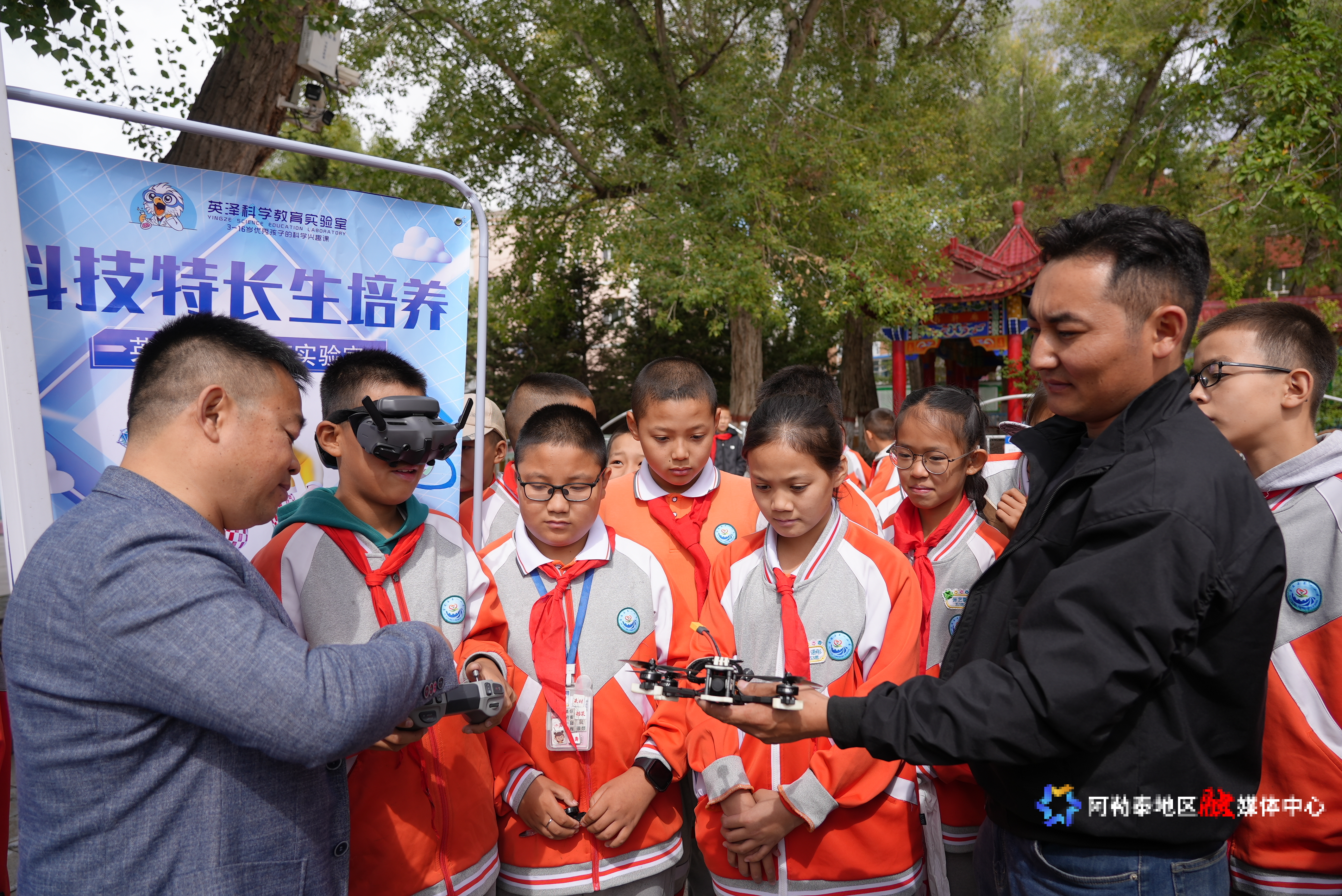 阿勒泰市第一中学教师带学生体验科普活动,智能机器狗舞狮表演凭借灵活动作吸引全场目光。