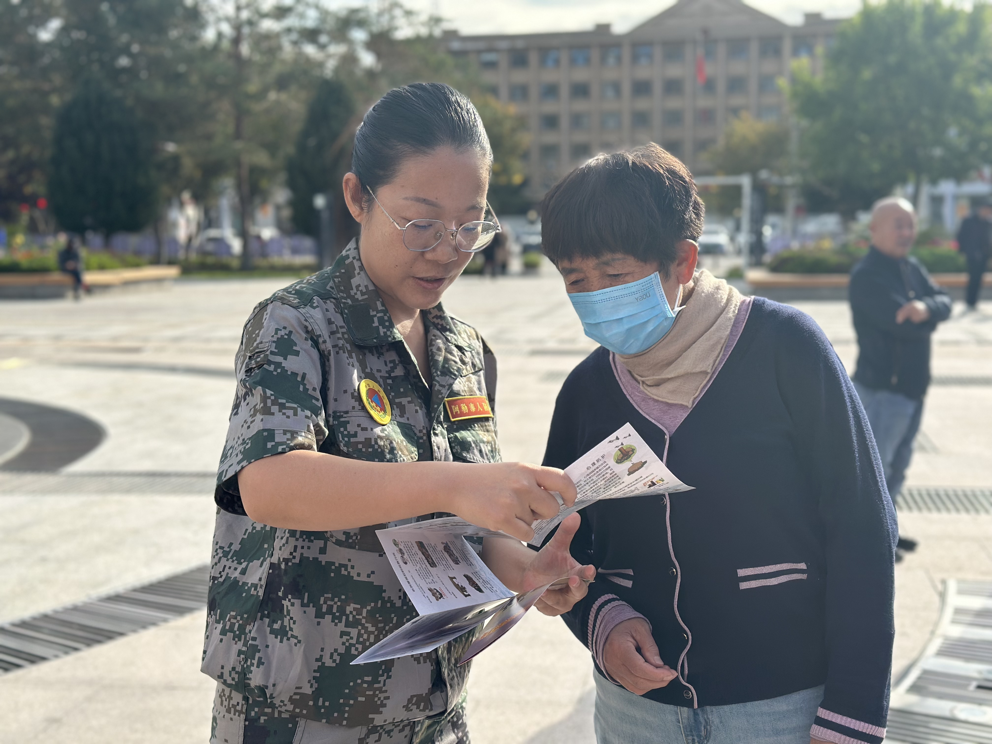 同日,由地区住建局(人防办)牵头,联合地区国防动员办公室、阿勒泰市住建局在阿勒泰市金山广场组织开展“9·18”人民防空警报试鸣暨人防知识宣传活动。工作人员通过设立咨询台、发放宣传资料、布置展板等形式,向过往群众宣传人民防空相关法律法规、防空防灾知识以及应急自救互救技能。