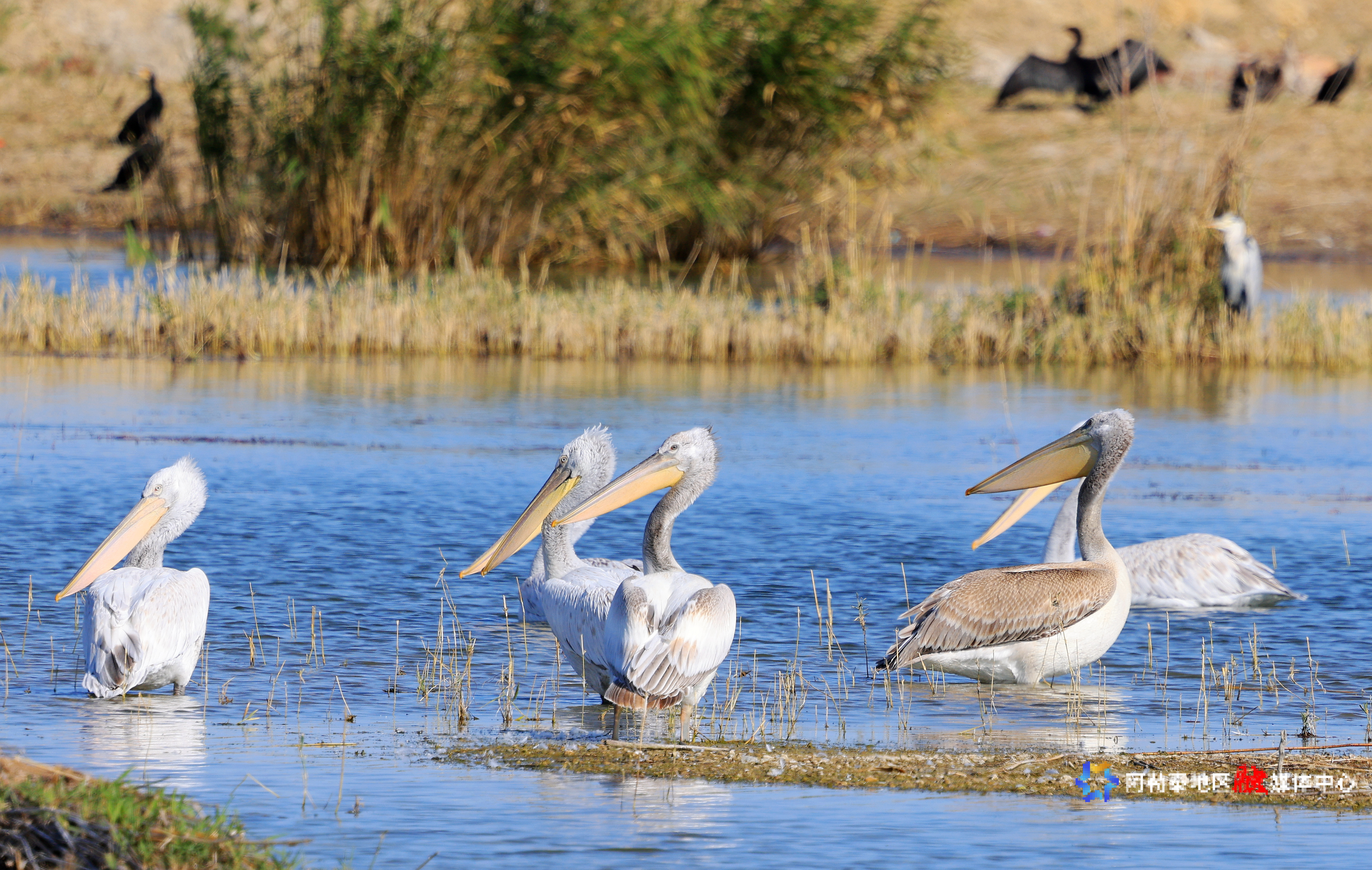 阿勒泰新闻网-阿勒泰地区融媒体中心(记者 阿尔达克·拜斯汗)9月18日,国家一级重点保护野生动物卷羽鹈鹕在乌伦古湖国家湿地公园觅食嬉戏。