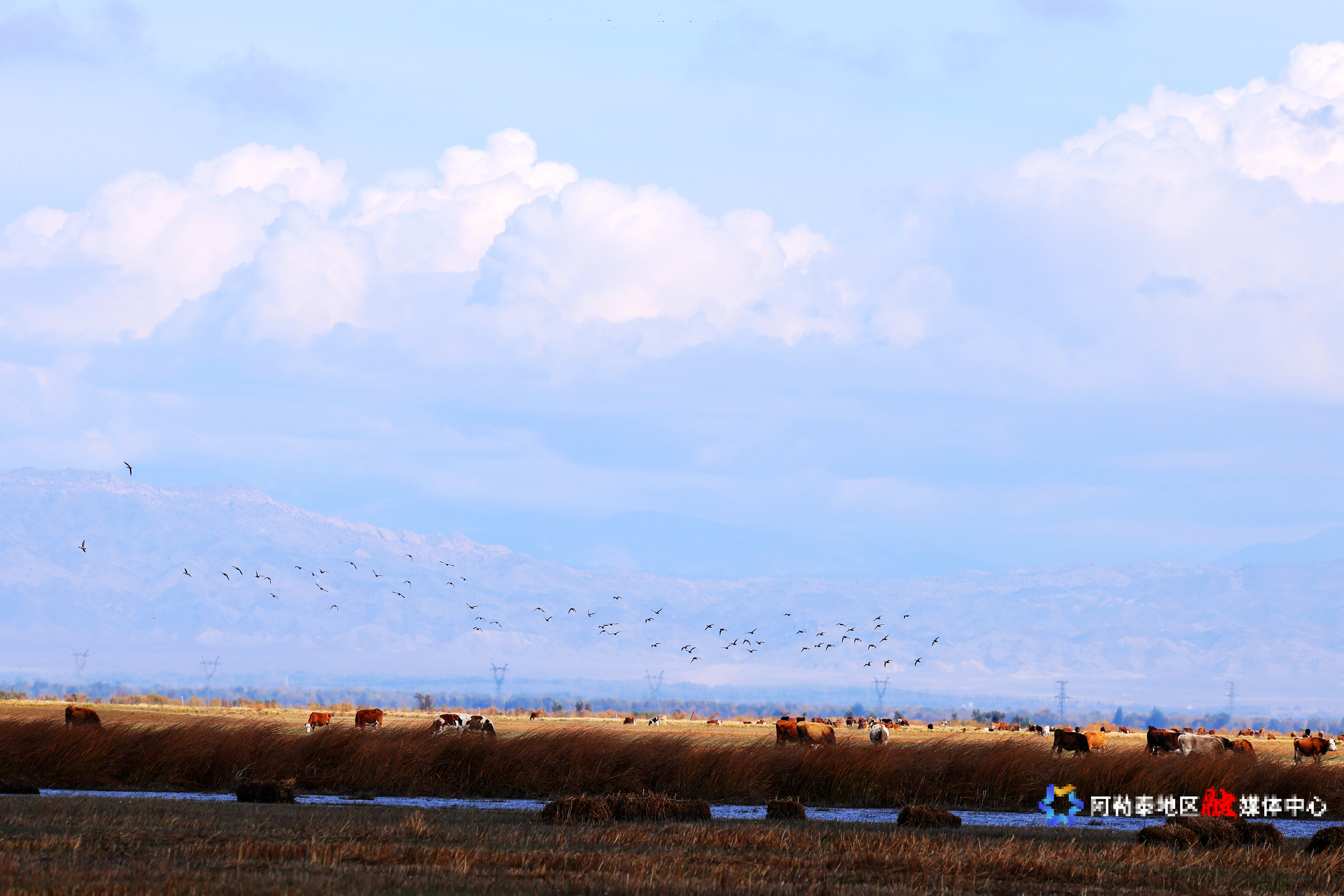 据了解,阿勒泰科克苏湿地国家级自然保护区是集河流、湖泊、沼泽、草甸、草原、荒漠等多种生态景观类型于一身的重要的复合生态系统,是新疆北部戈壁荒漠中最大的沼泽湿地。保护区内不仅水草丰美,滋养着成群的牛羊,更是众多候鸟迁徙途中至关重要的栖息地和“加油站”。