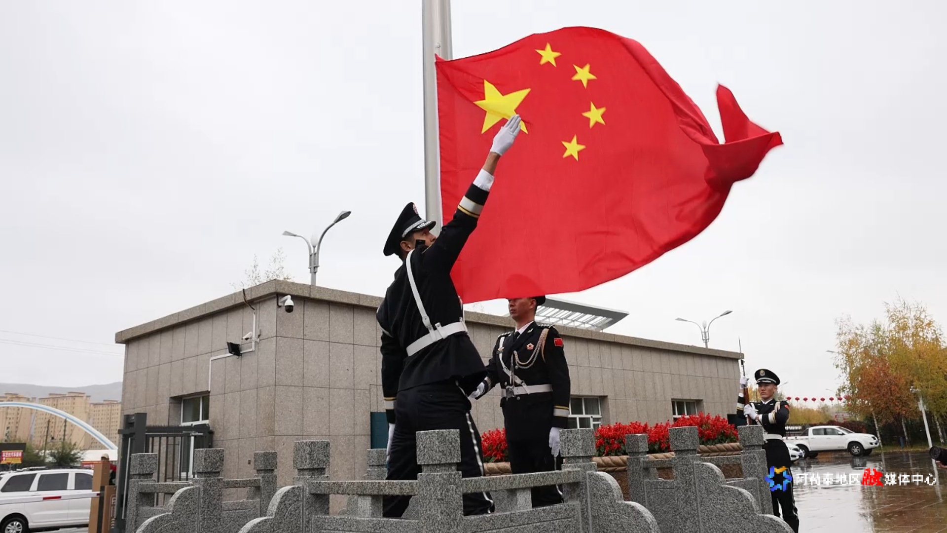 在阿勒泰地区森林消防支队营区,全体指战员身着整齐制服,隆重举行升国旗仪式,以铮铮誓言与昂扬姿态,向祖国致敬,向边疆告白。