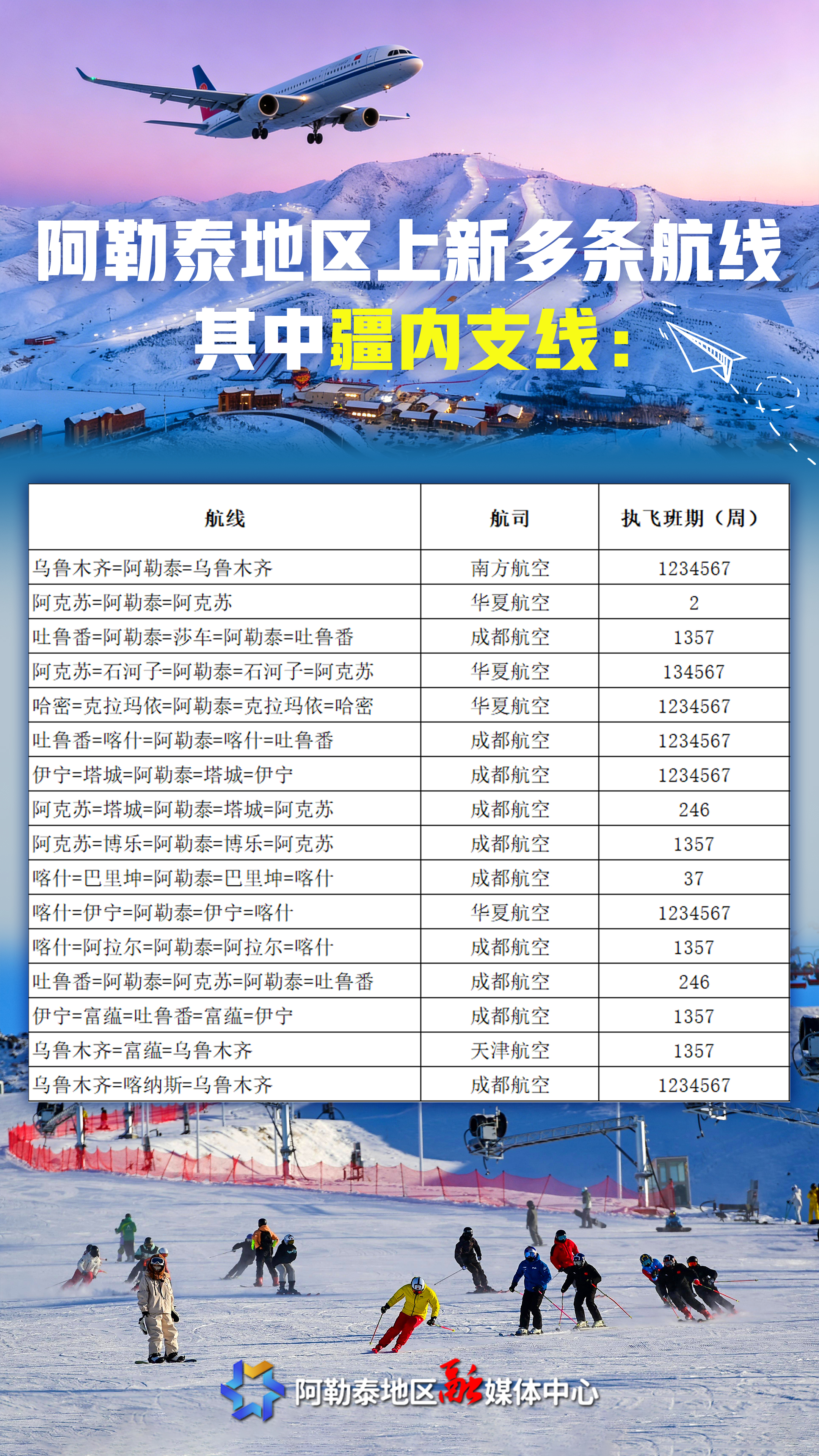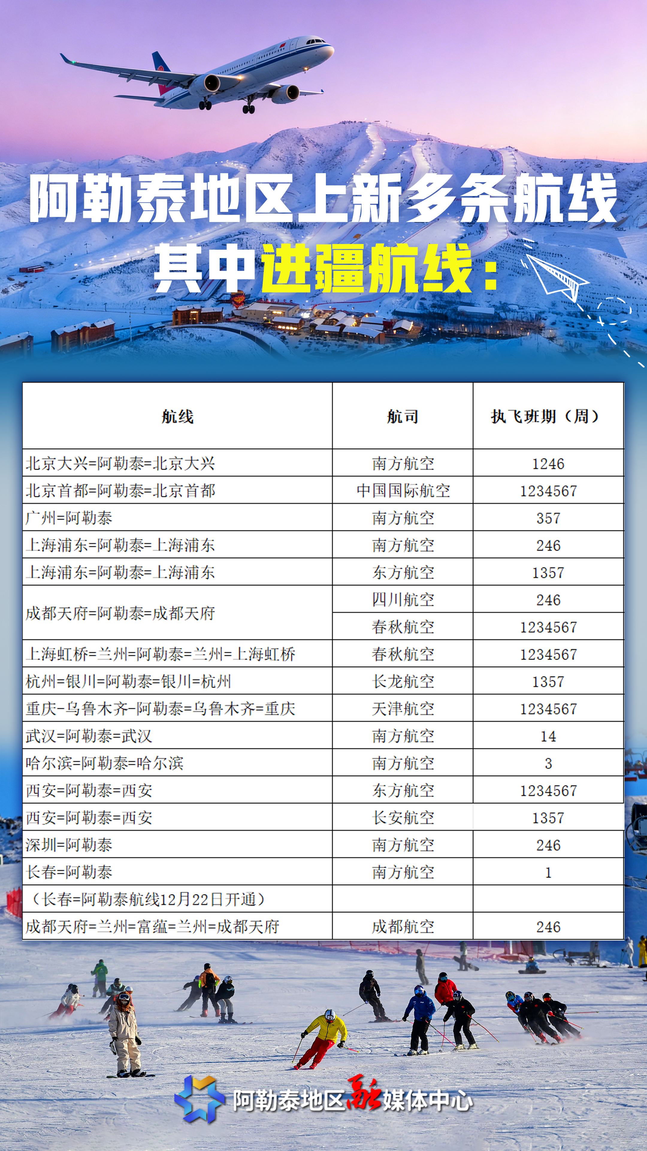 阿勒泰新闻网-阿勒泰地区融媒体中心(记者 古丽娜)12月27日,记者从地区发展和改革委员会了解到,天津航空计划自2026年1月19日起恢复运行阿勒泰—西安航线。届时,西安—阿勒泰航线日航班量将达2—3班,精准衔接滑雪客流高峰,进一步织密阿勒泰航空网络,为全国游客畅游“中国雪都”构建高效便捷的空中通道。