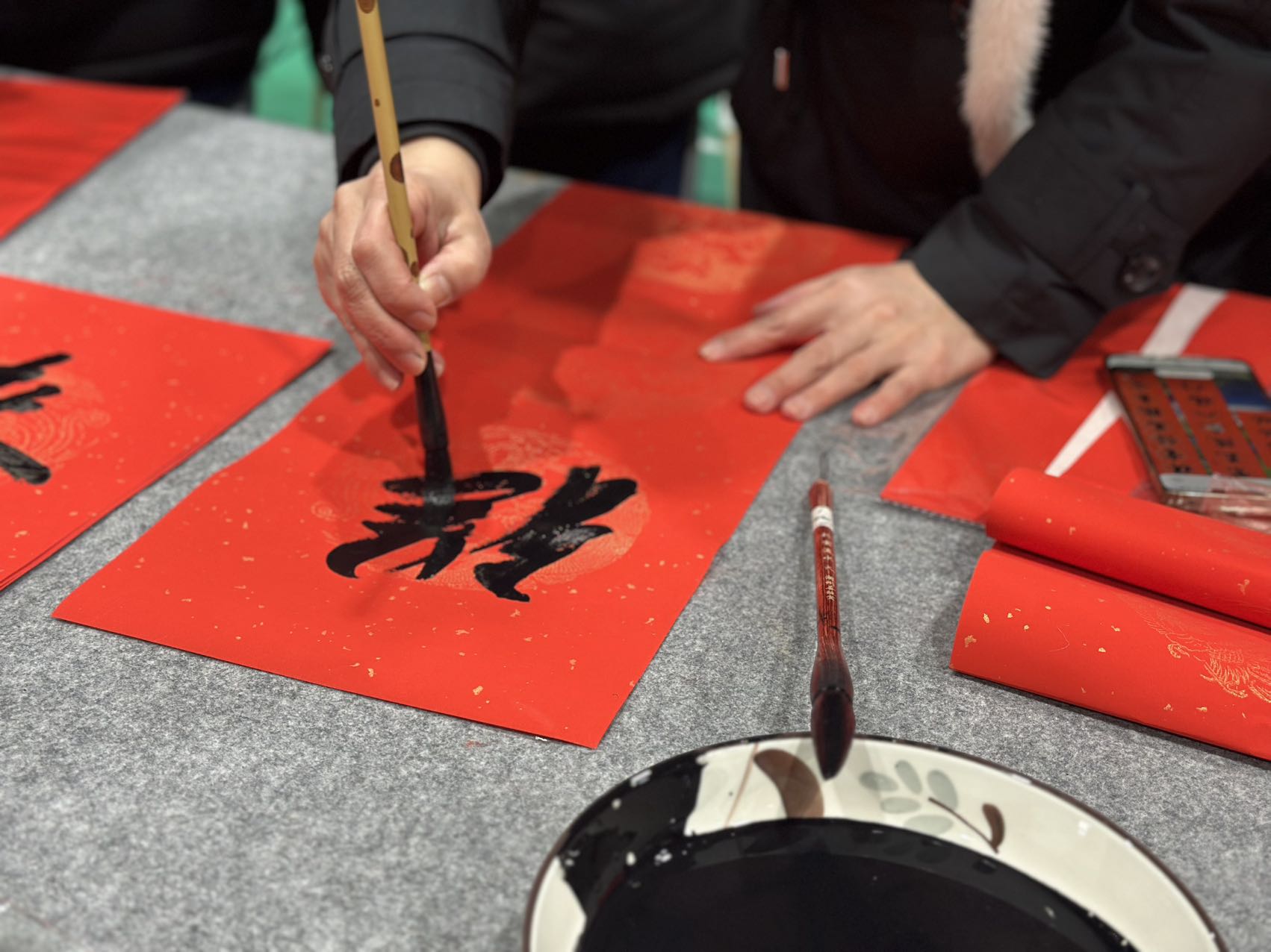 本次活动共为师生书写赠送春联、“福”字数百幅,送出剪纸作品百余件。活动以书法为载体,让师生在近距离感受中华优秀传统文化魅力的过程中,增进了对中华文化的认同与热爱,也让民族团结的种子在青少年心中生根发芽、茁壮成长。