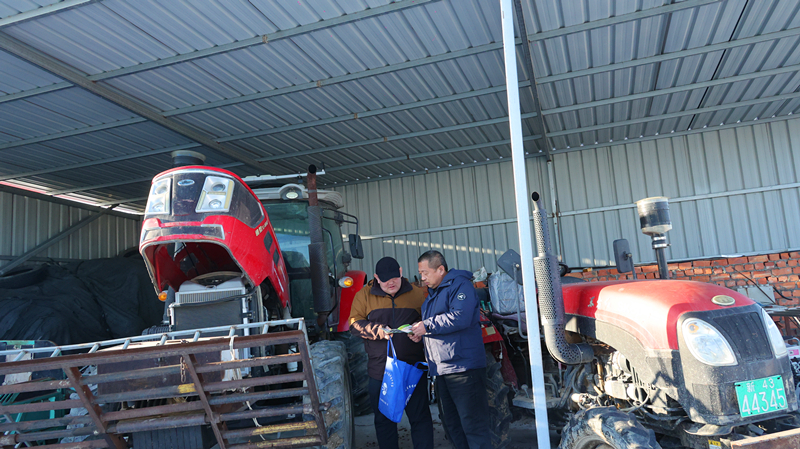 在也格孜托别乡喀拉阿尕什村,农机技术人员走进农机大户李春华的家中,为他讲解农机维修保养要点及各类农机具的安全使用方法。技术人员重点对拖拉机、播种机等关键机具的制动系统、灯光信号及防火设施进行了现场检查与指导,面对面解答农户疑问,切实为春耕生产筑牢安全防线。