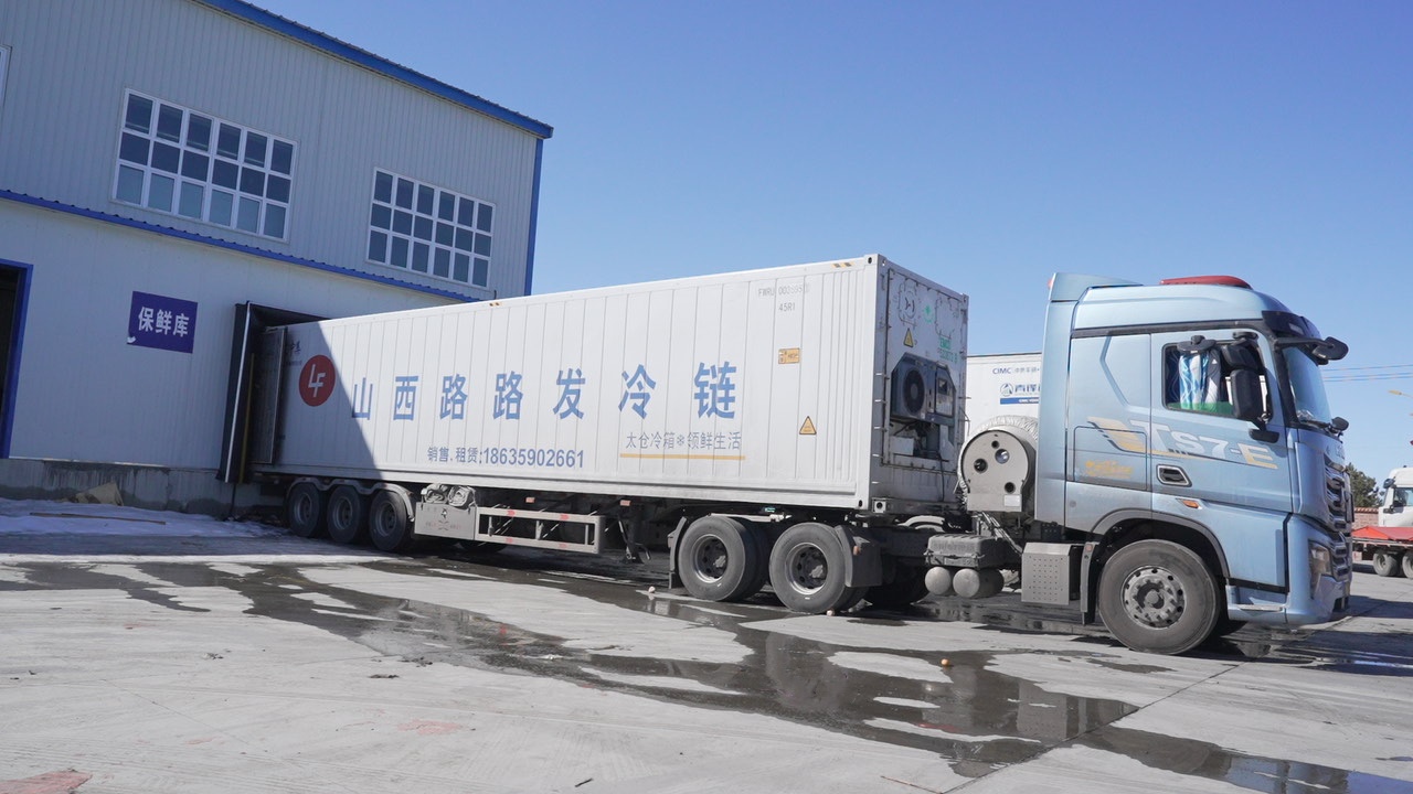 3月31日,在吉木乃口岸货运现场,一辆冷链车正在装载出口水果。通讯员 胡阿尼什·那斯哈提 王杨胤骐摄