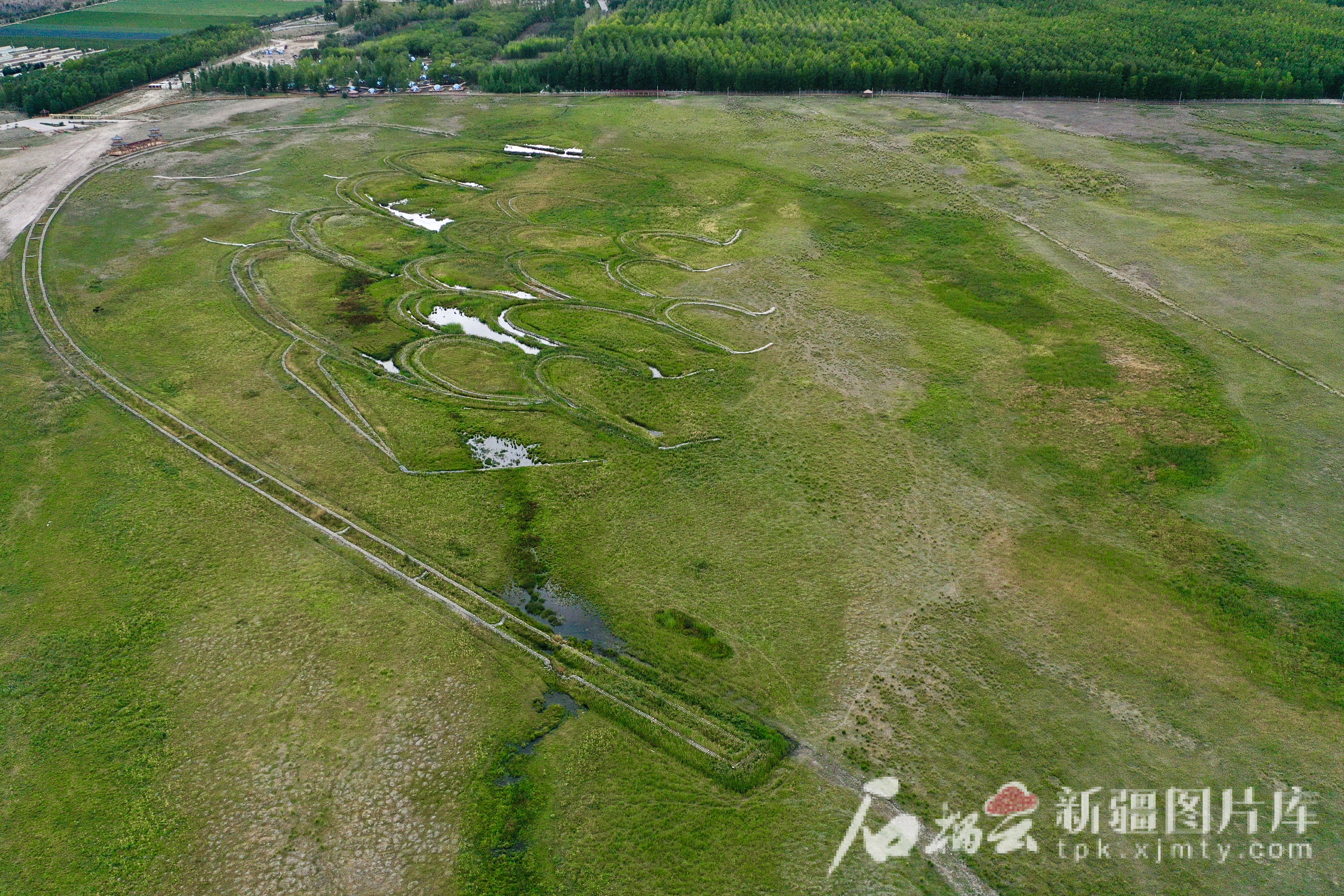 8月15日,俯瞰温泉县博尔塔拉河国家湿地公园。(无人机摄)