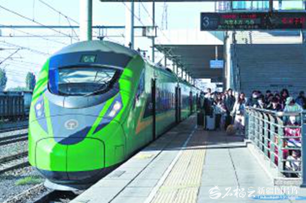 “复兴号”动车停靠在石河子站。陈继伟摄