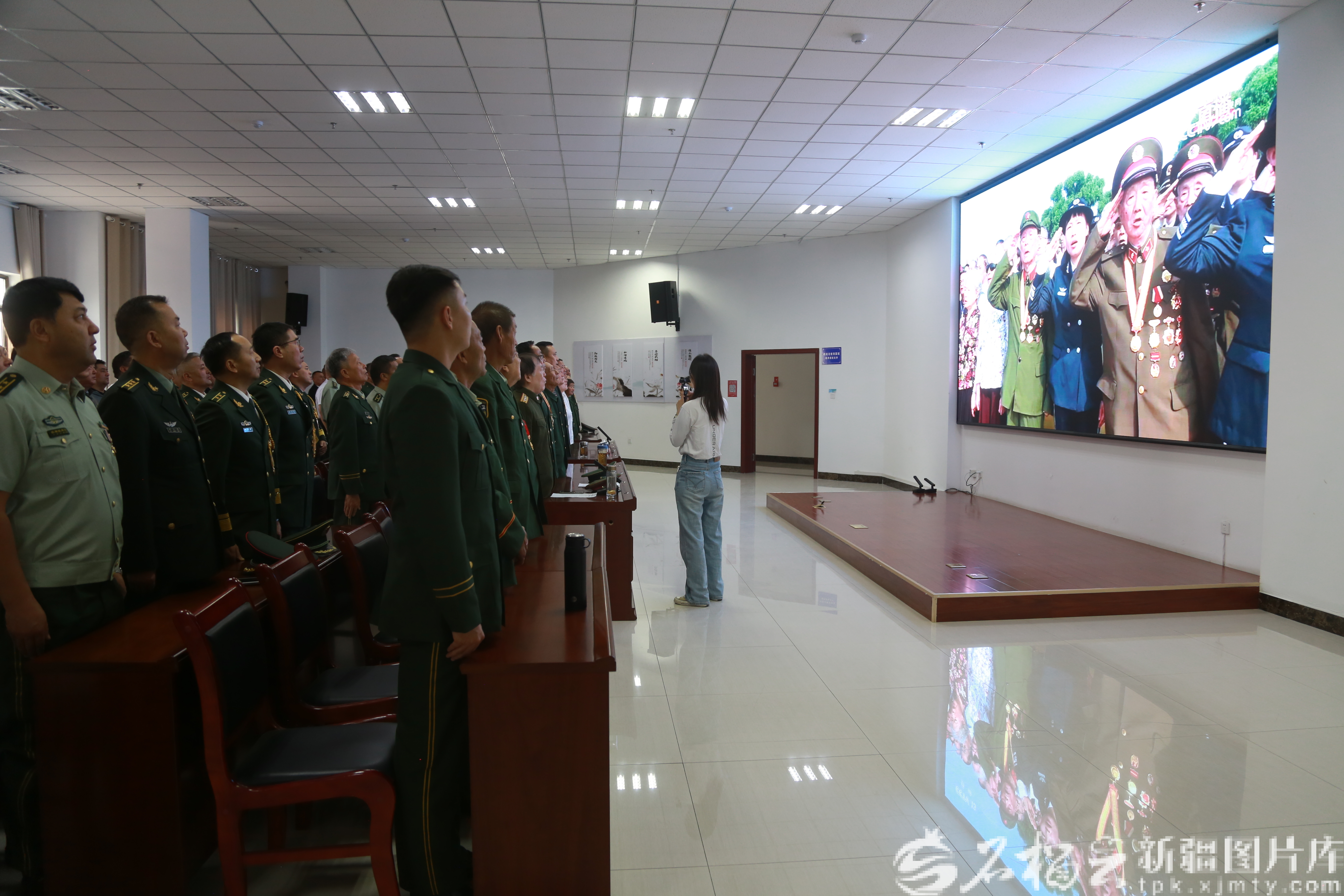 9月3日,在伊犁哈萨克自治州退役军人事务局会议室,120名退役军人一起观看了纪念中国人民抗日战争暨世界反法西斯战争胜利80周年大会直播。王红英摄