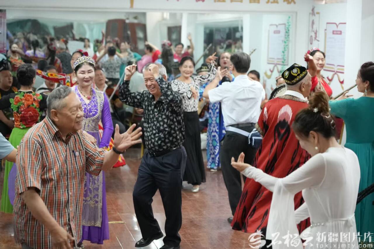 9月2日,加拿大安大略省万锦市区域议员李国贤一行在新疆库尔勒市参访,与当地各族群众欢乐起舞。赵富强 摄