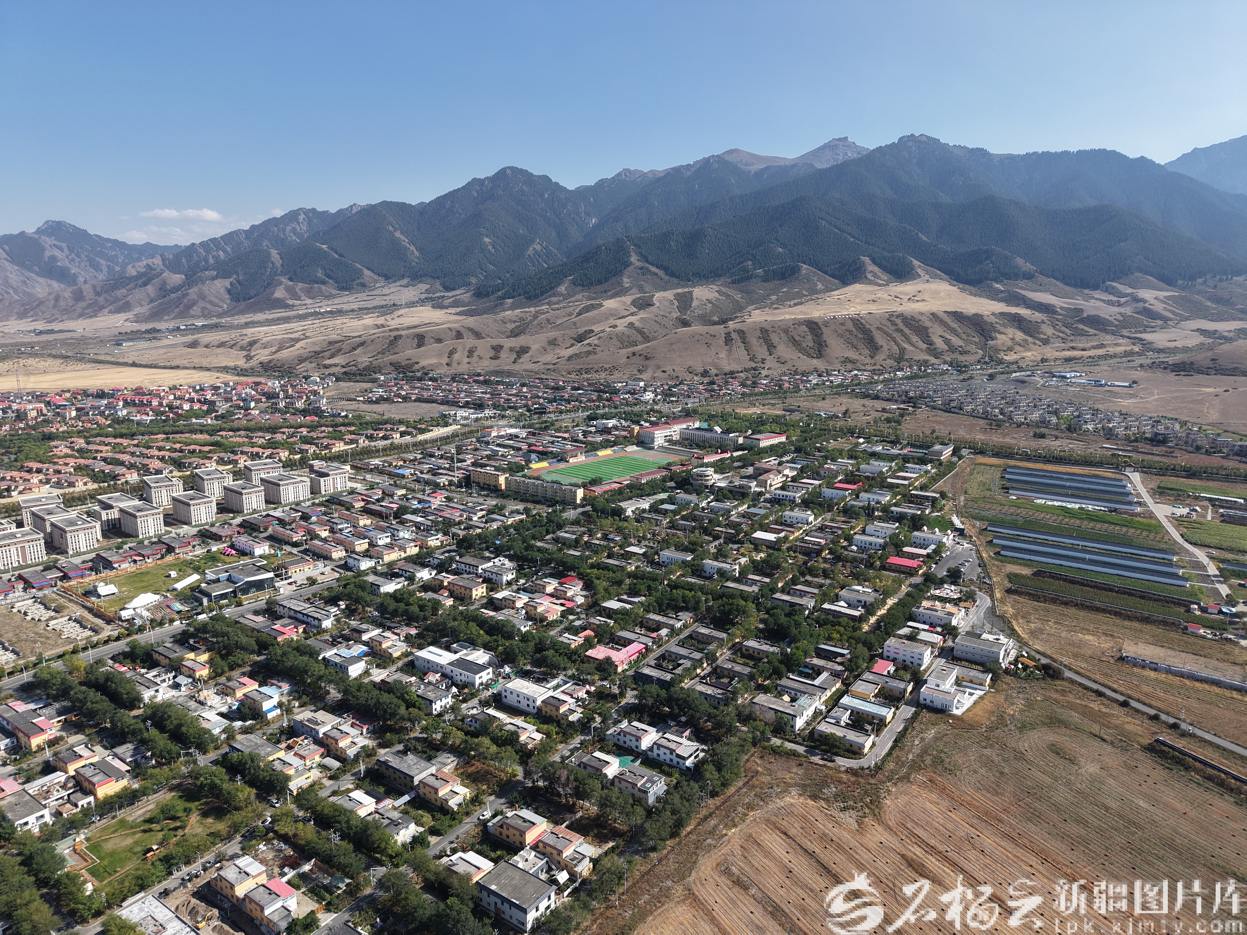 9月8日,俯瞰乌鲁木齐县水西沟镇平西梁村全景。