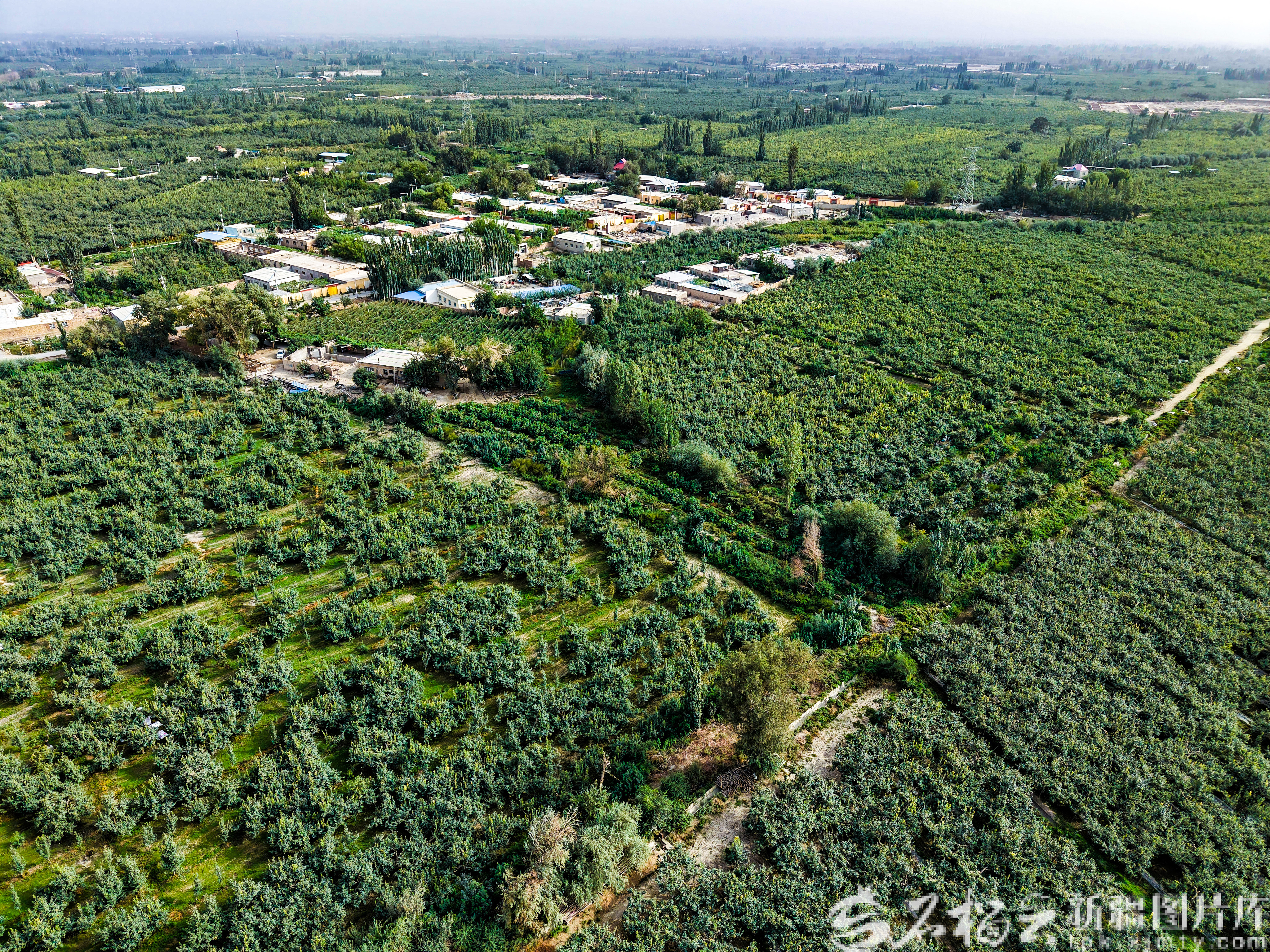 9月8日,航拍位于阿瓦提乡的梨园。