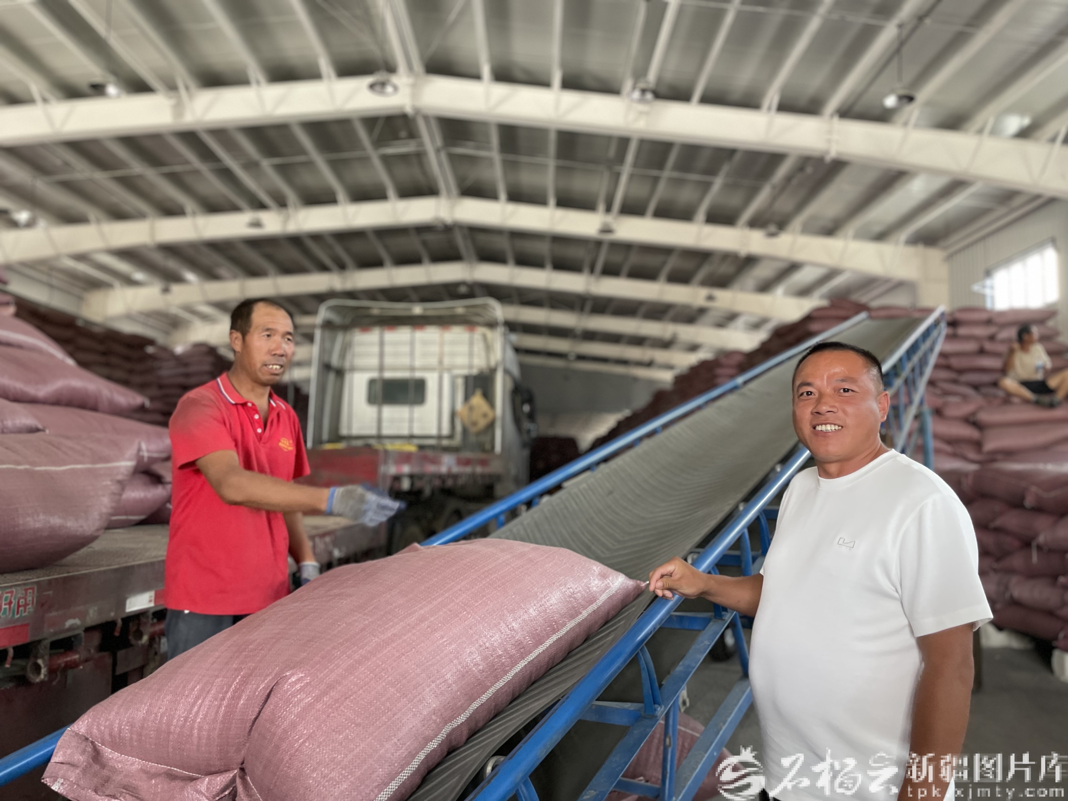 李福玉(右)种植的瓜子正在入库。天山网-新疆日报记者 郭玲摄