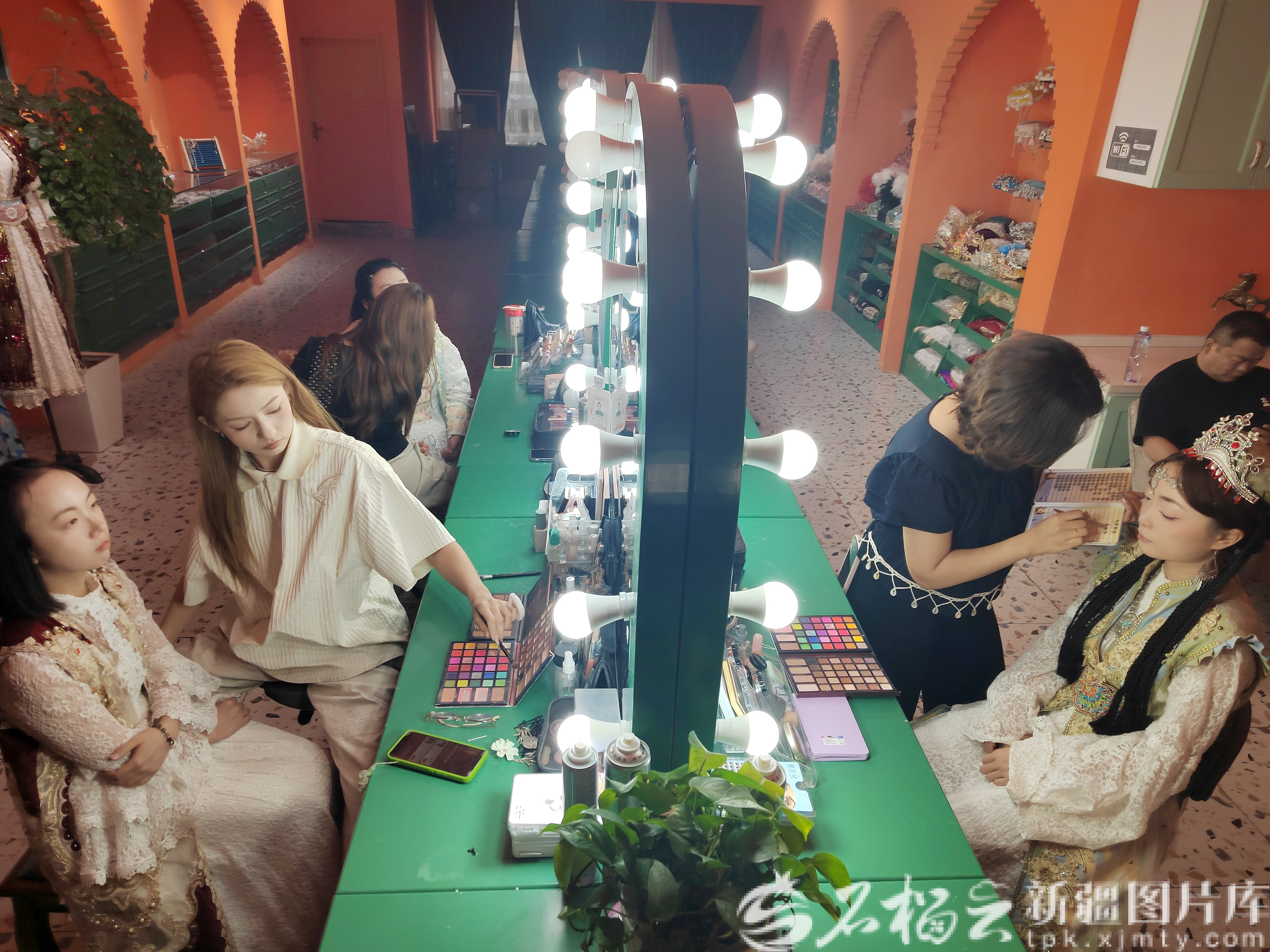 9月8日,游客在新疆国际大巴扎步行街印象巴扎·旅拍店化妆。