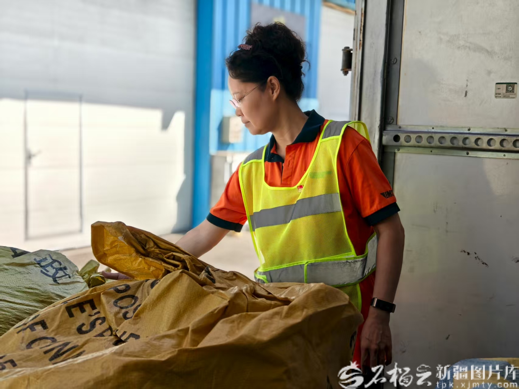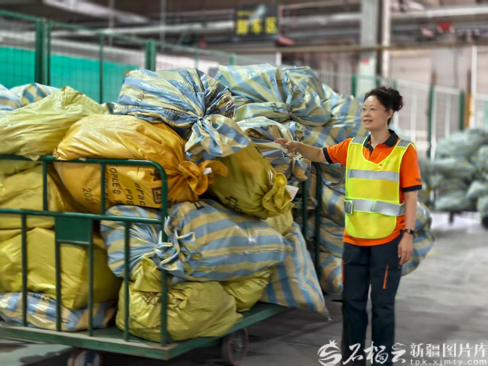 乌鲁木齐国际邮件互换局(交换站)邮政班组负责人马玲在调配国内出关邮件做装车前的准备。天山网-新疆日报记者 范琼燕摄