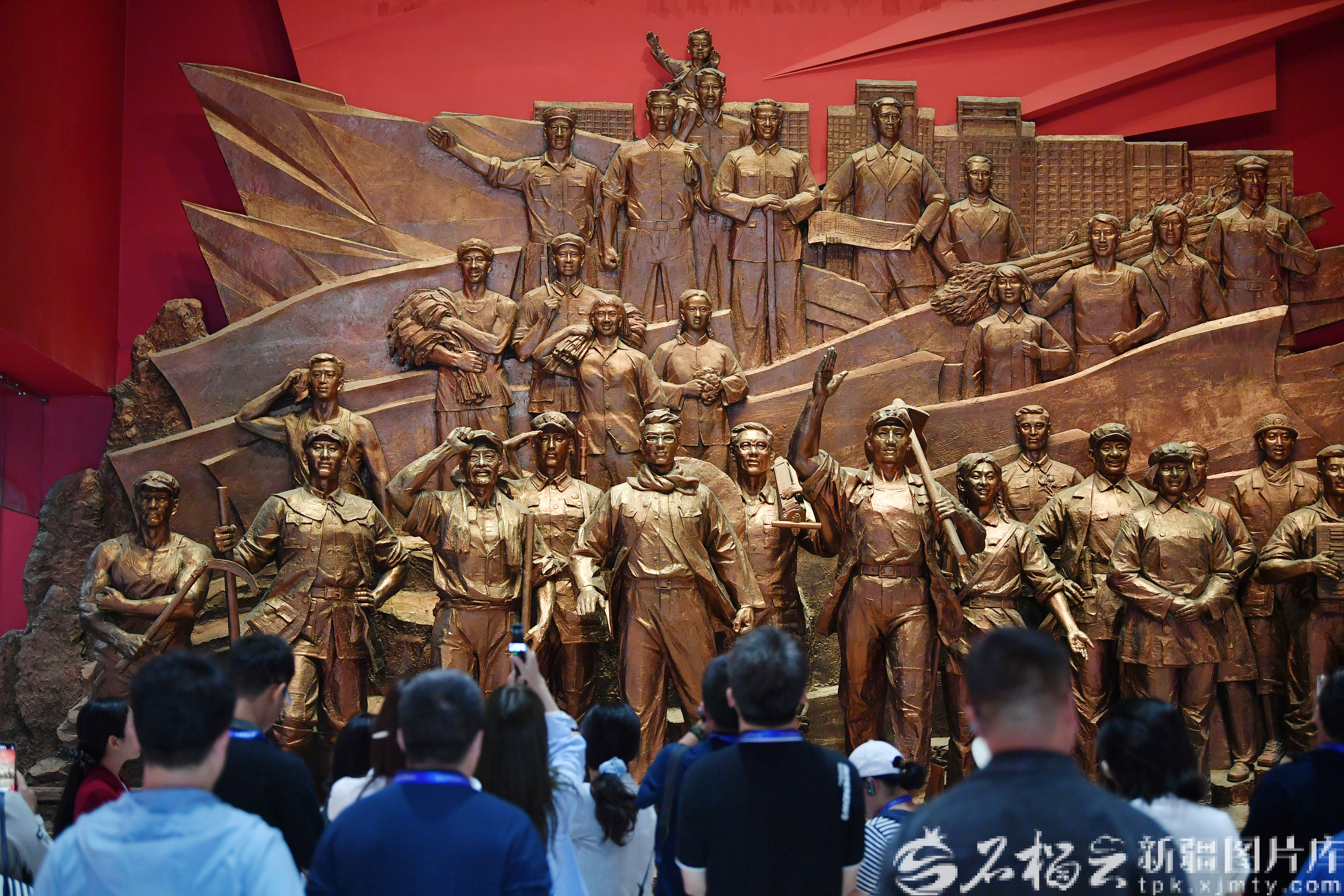 9月11日,游客在新疆兵团军垦博物馆参观拍摄。