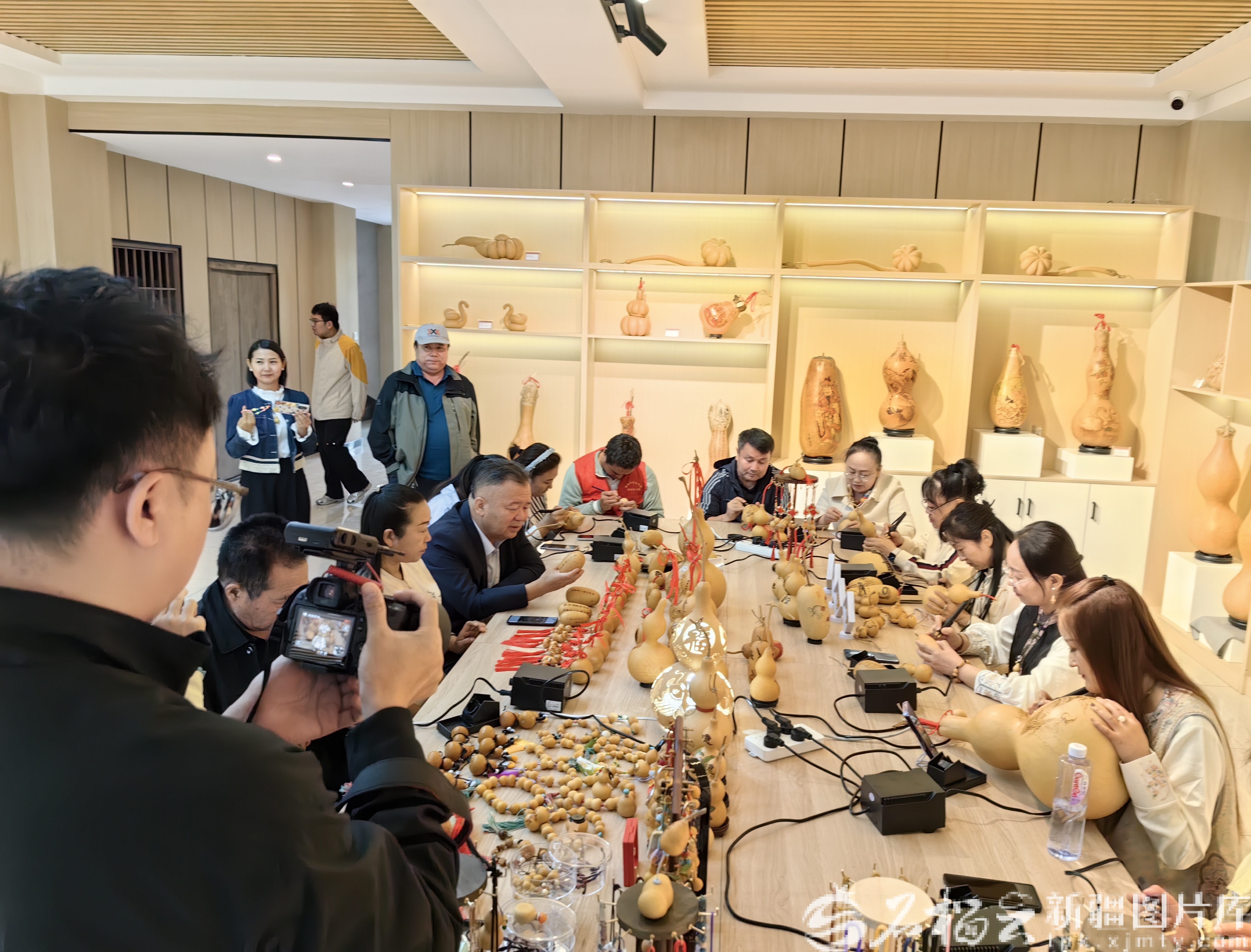 9月13日,采访团成员在榆柳巷额敏县记忆馆葫芦烙画非遗技艺研学基地拍摄。