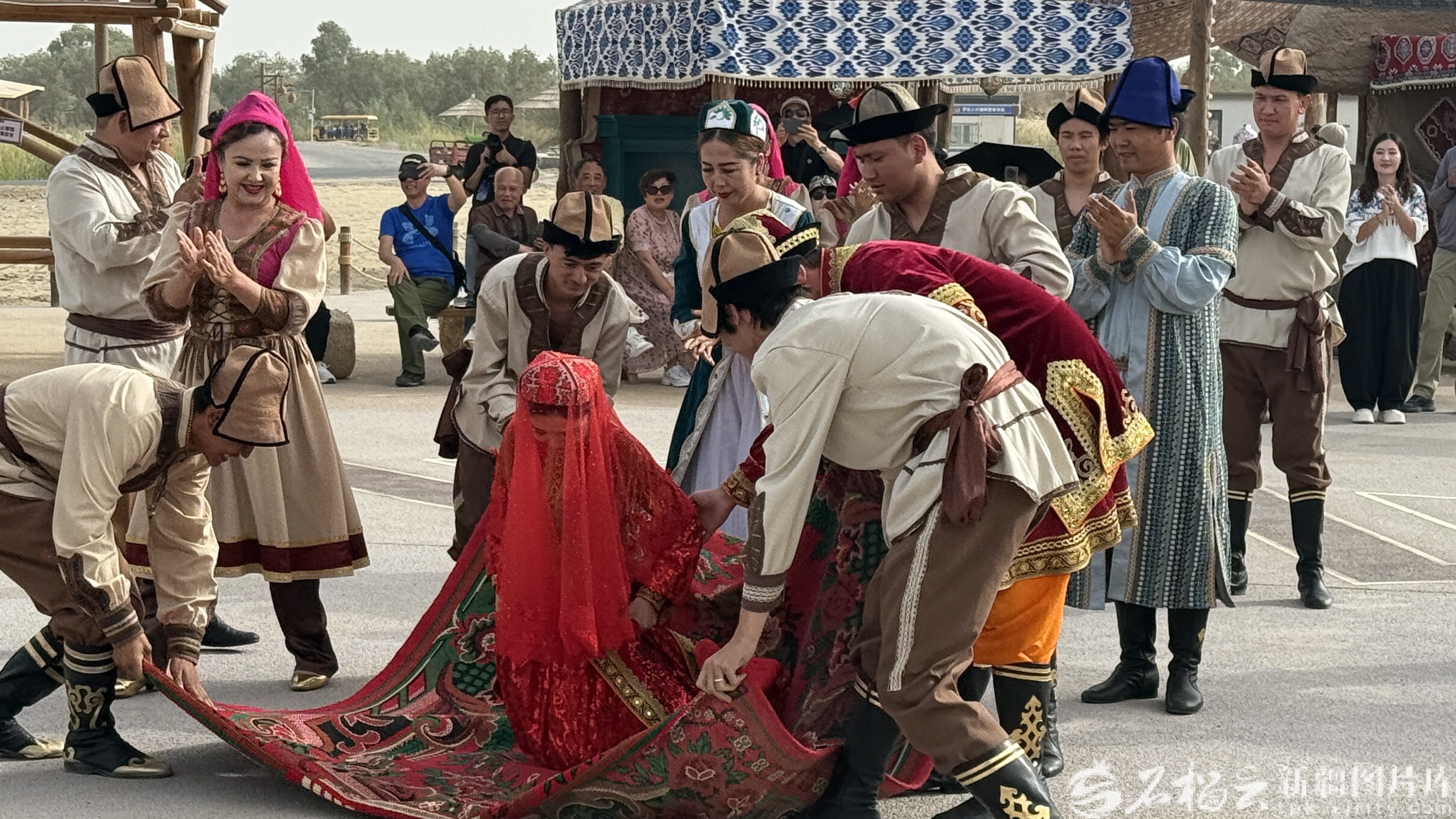 9月14日,罗布人村寨景区的“丝路巴扎”洋溢着喜庆气氛,演员们正在演绎罗布人婚俗。天山网-新疆日报记者 拍热扎提·阿不都 摄
