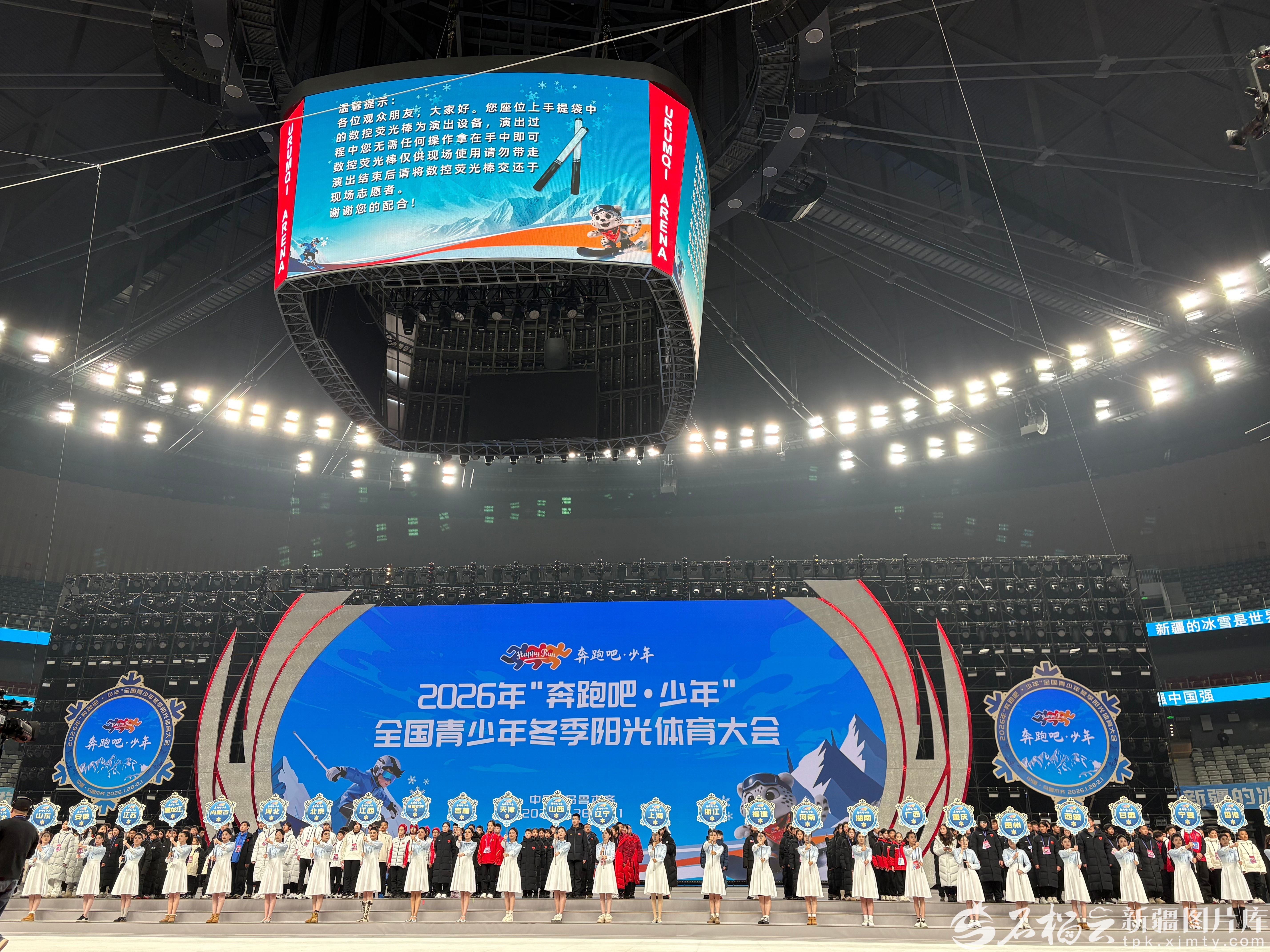 1月29日21时,乌鲁木齐奥体中心综合体育馆,2026年“奔跑吧·少年”全国青少年冬季阳光体育大会开幕式现场。天山网-新疆日报记者 王晶晶摄